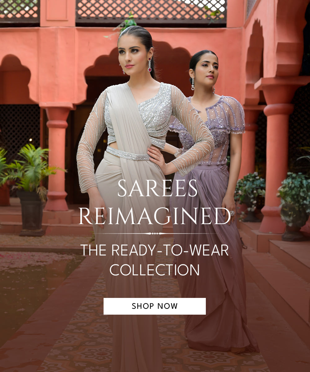 Panna Black Cutdana, Bead & Sequence Crepe Pre-Draped Designer Sar...