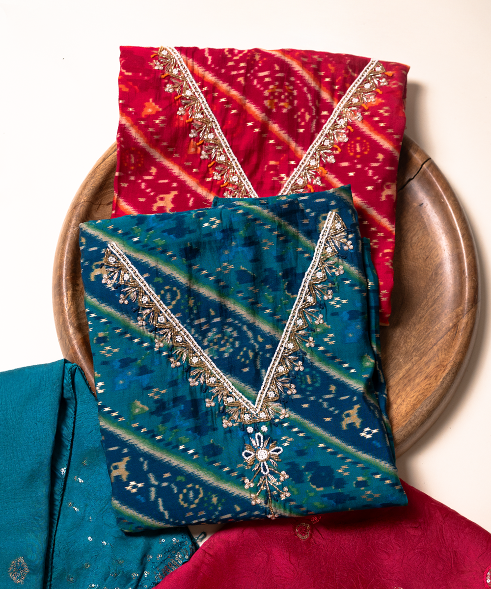Panna Glow Different In Gajari Georgette Unstitched Salwar Kameez ...