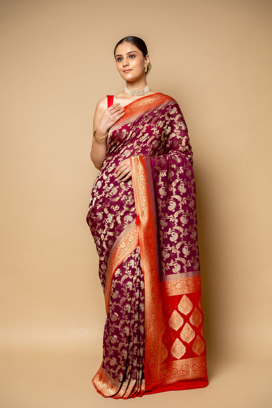 Dark Gajari Net Lehenga Set And Net Dupatta With Readymade Blouse