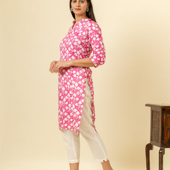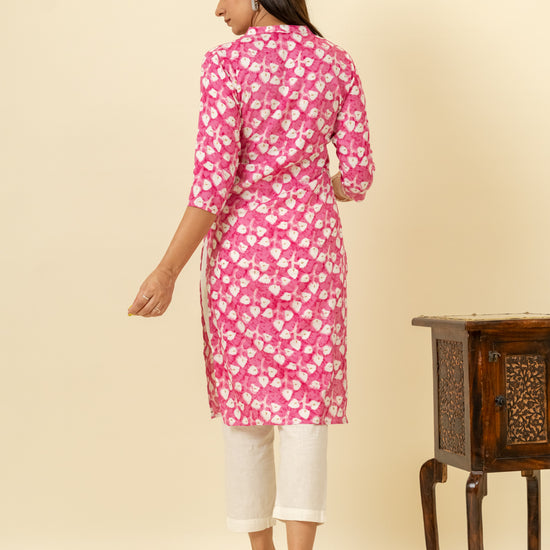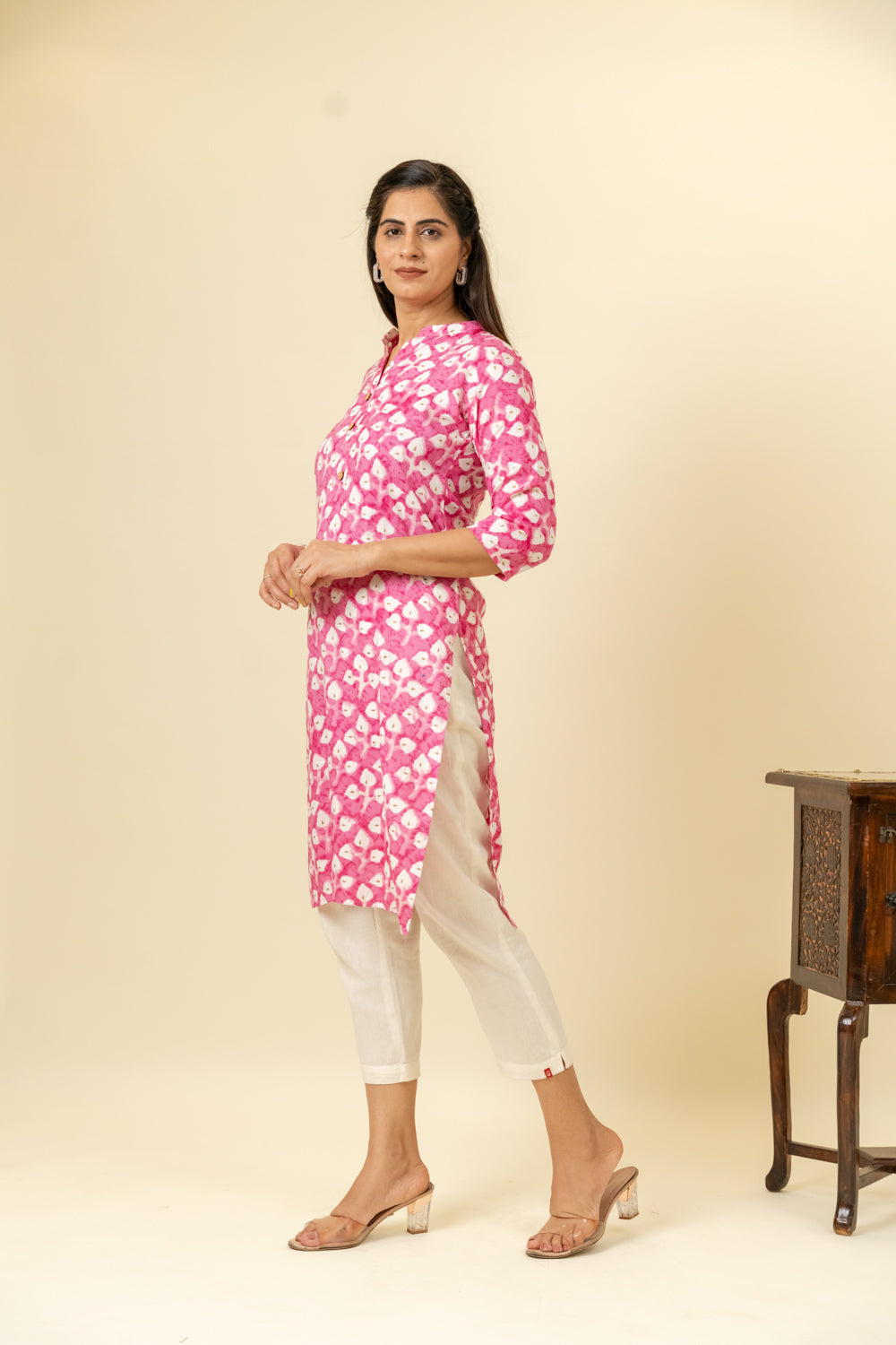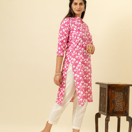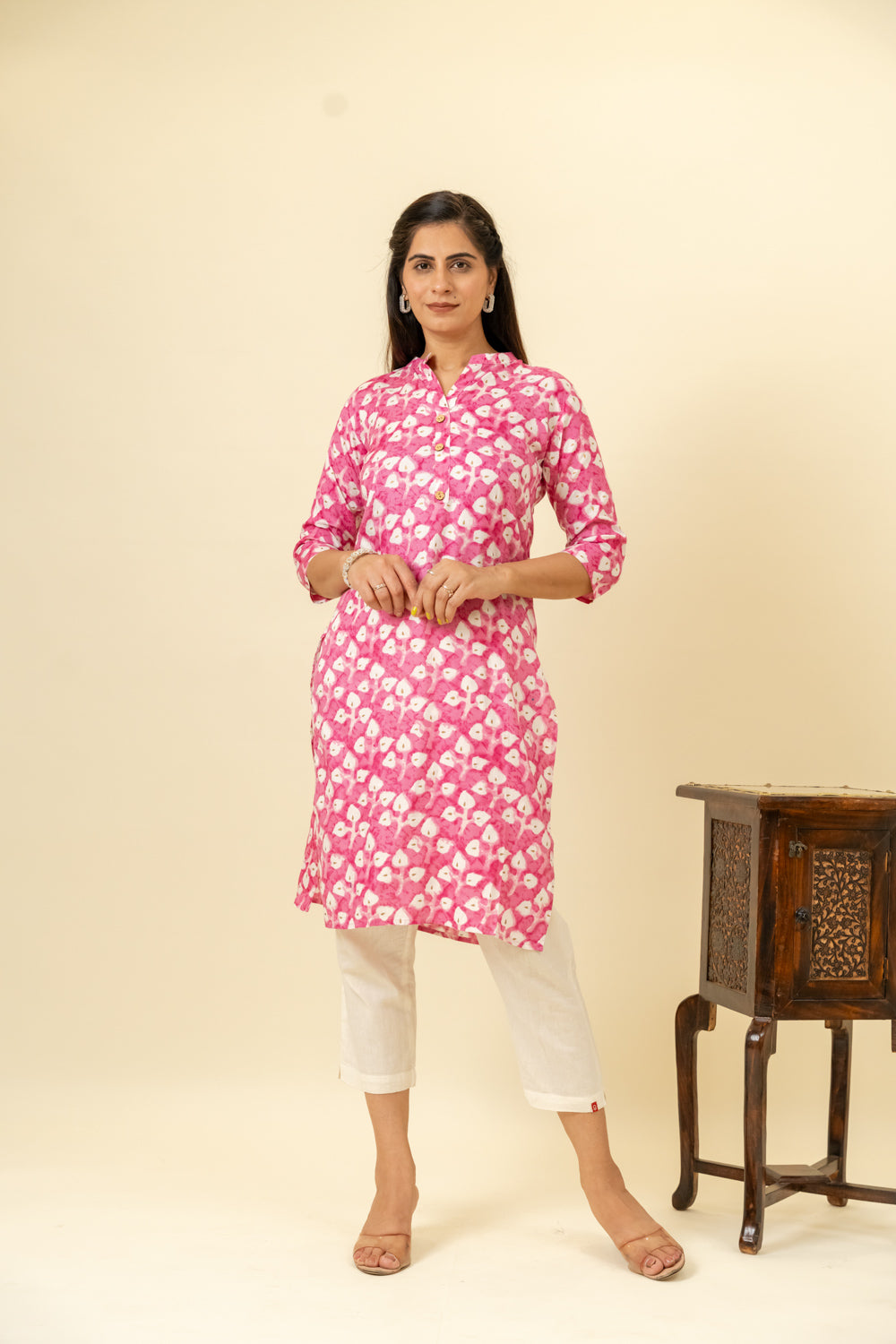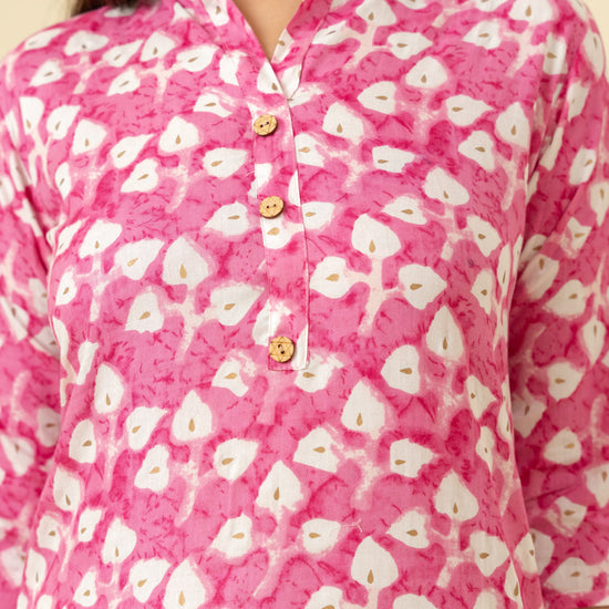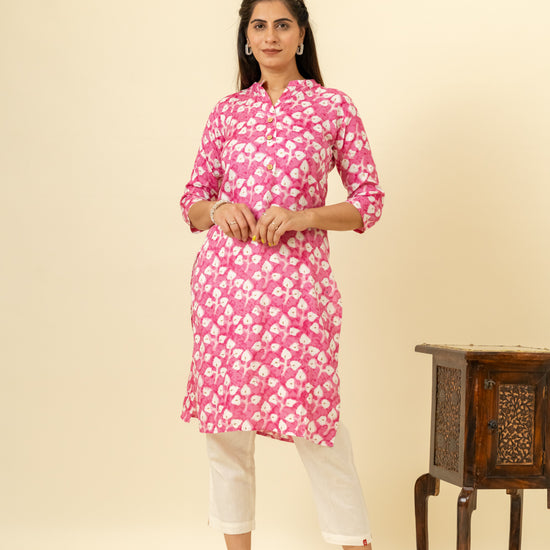 Panna Pink Floral Printed Cotton Readymade Long Kurta