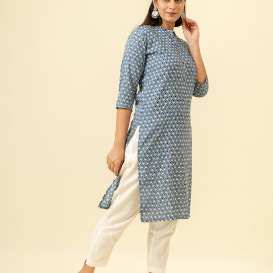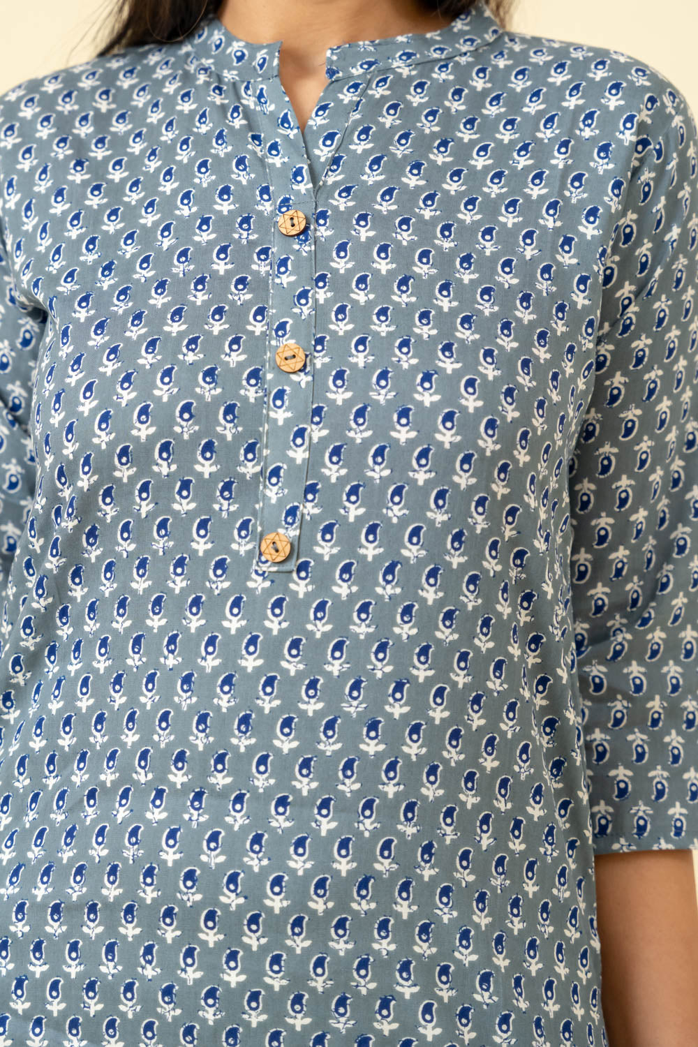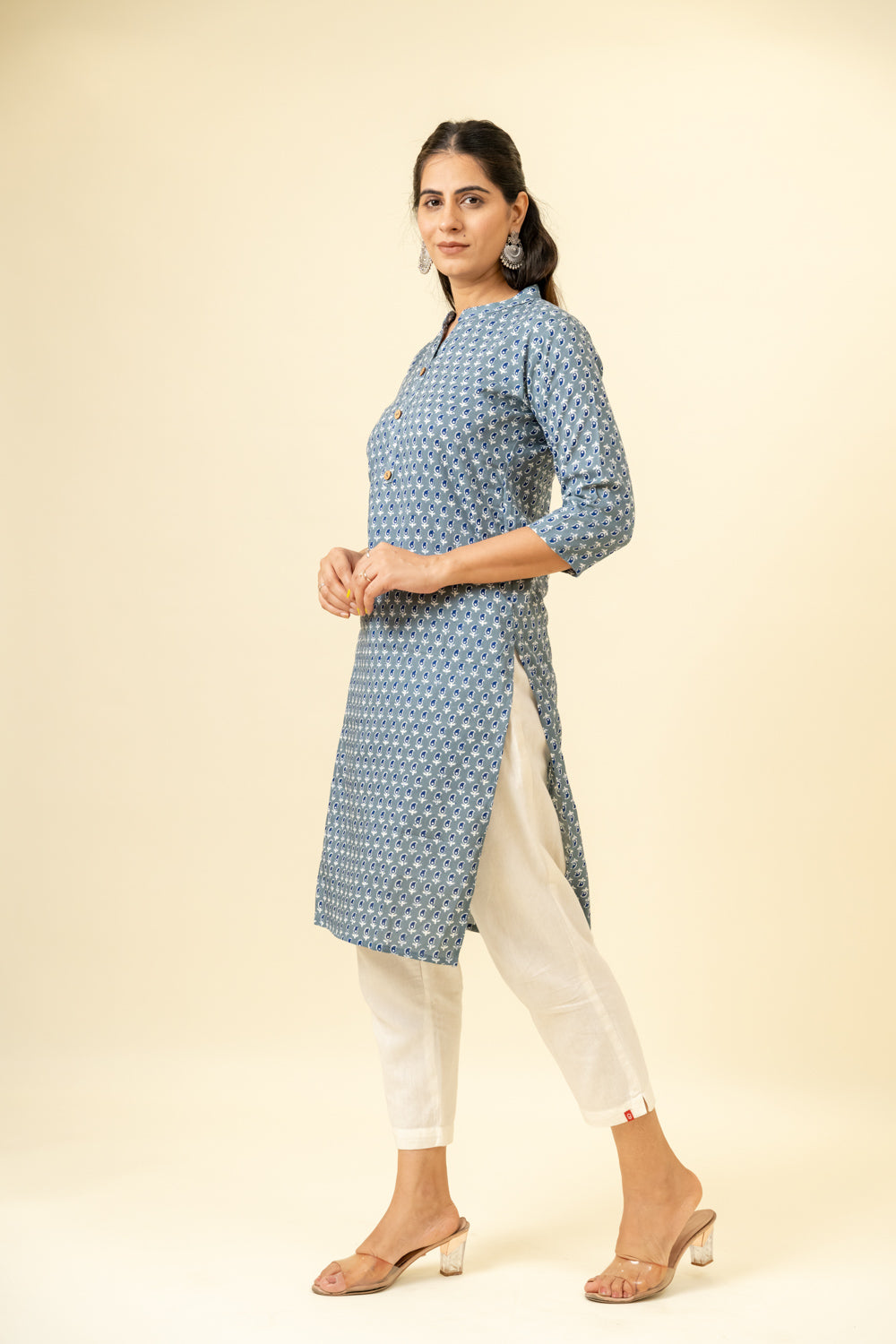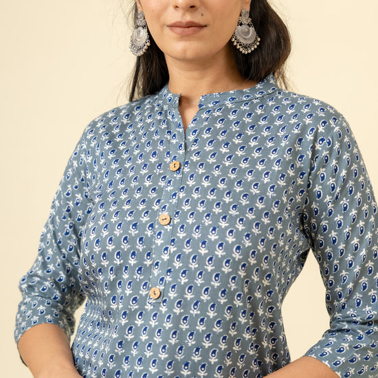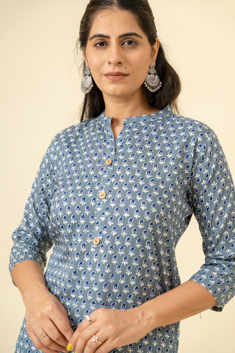 Panna Grey Digital Printed Cotton Readymade Long Kurta