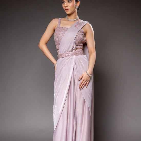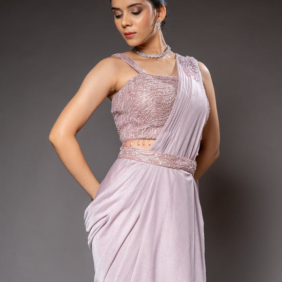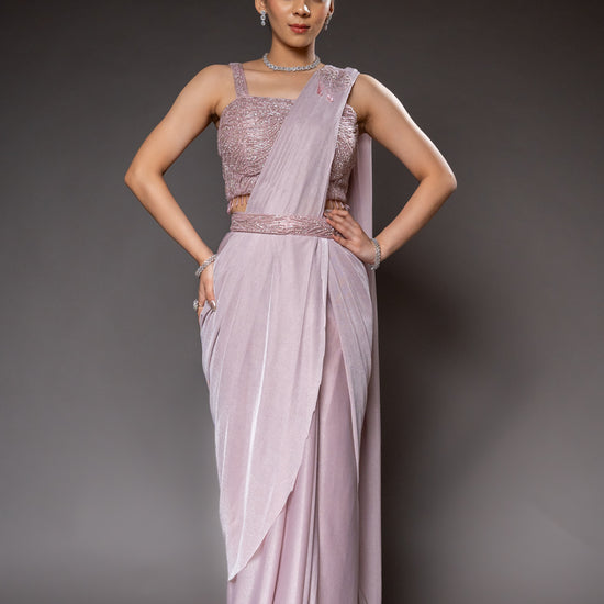 Olive Lycra Pre-Draped Designer Saree With Readymade Blouse – The Panna Shop