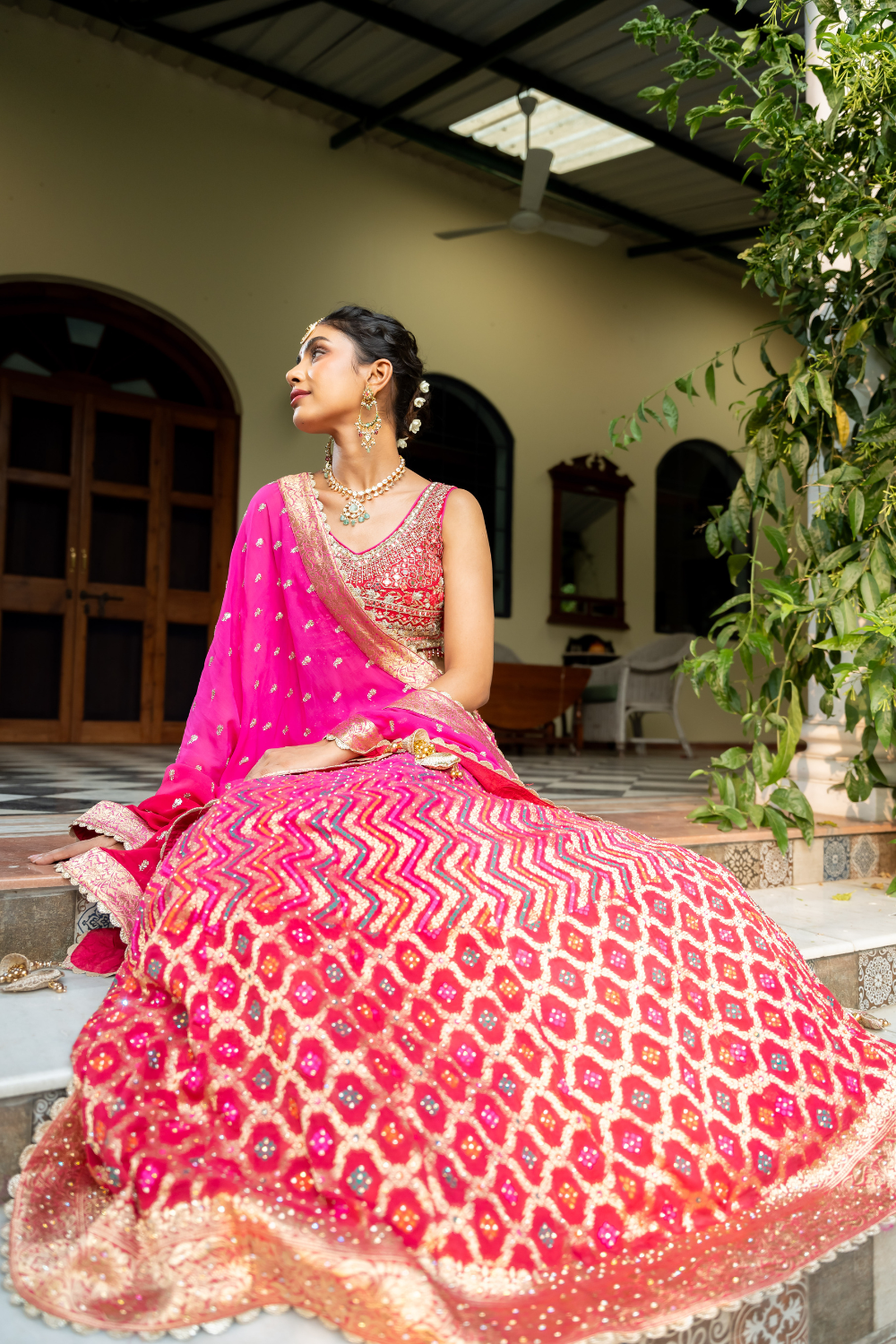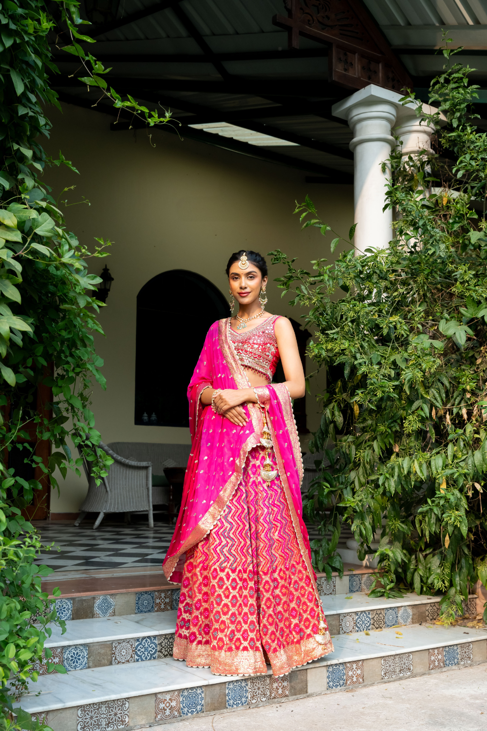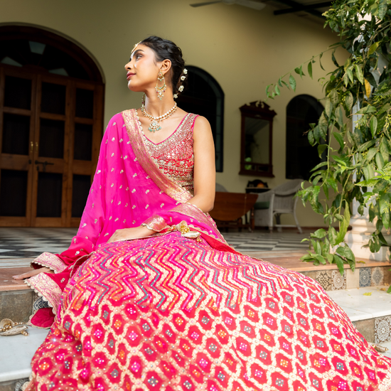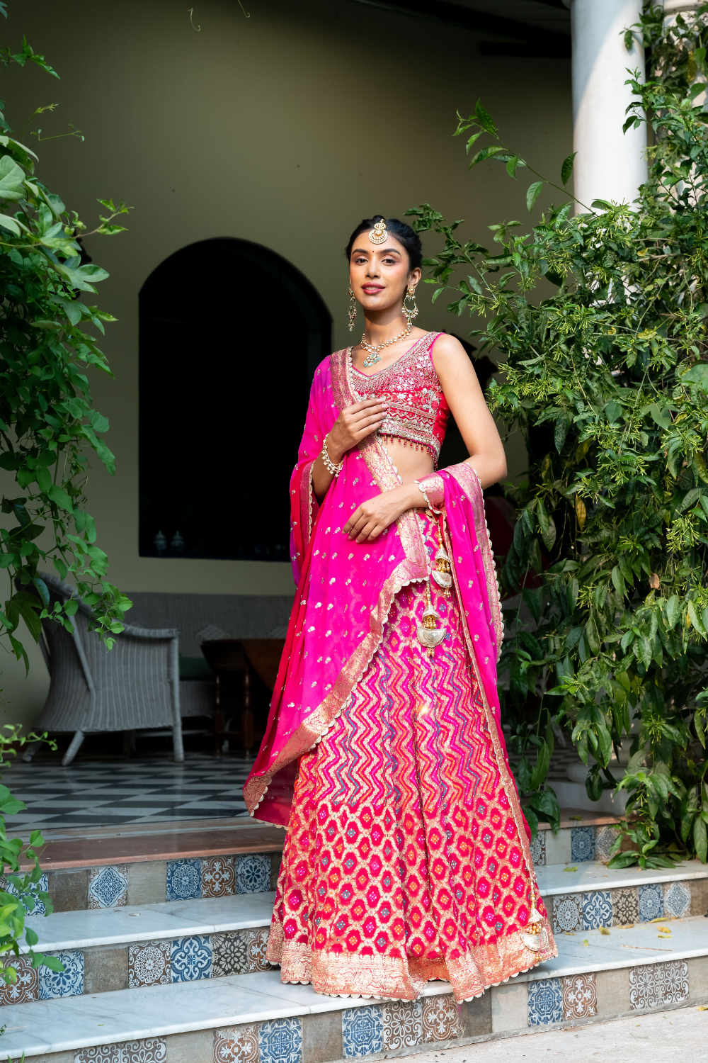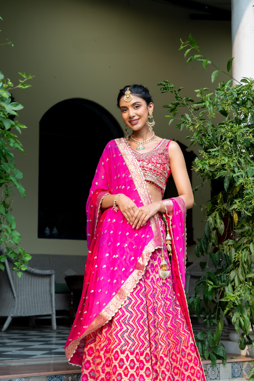 Featuring Banarasi Woven Zari, Sequence Mirror, Threadwork, Embroidery, this Georgette lehenga is designed for [Occasion]. Its Heavy finish ensures ease and grace. Keep it pristine with Dry Wash / Dry Clean.