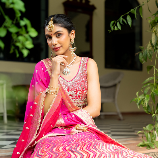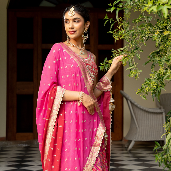 Work : Banarasi Woven Zari, Sequence Mirror, Threadwork, Embroidery