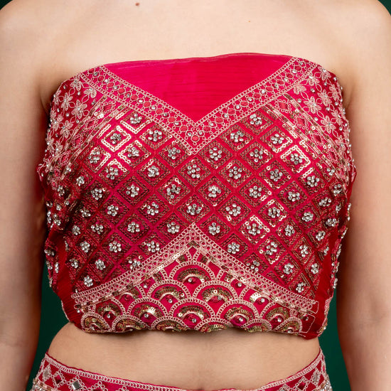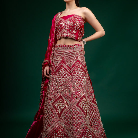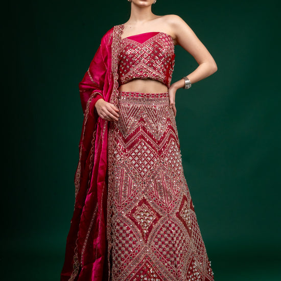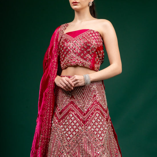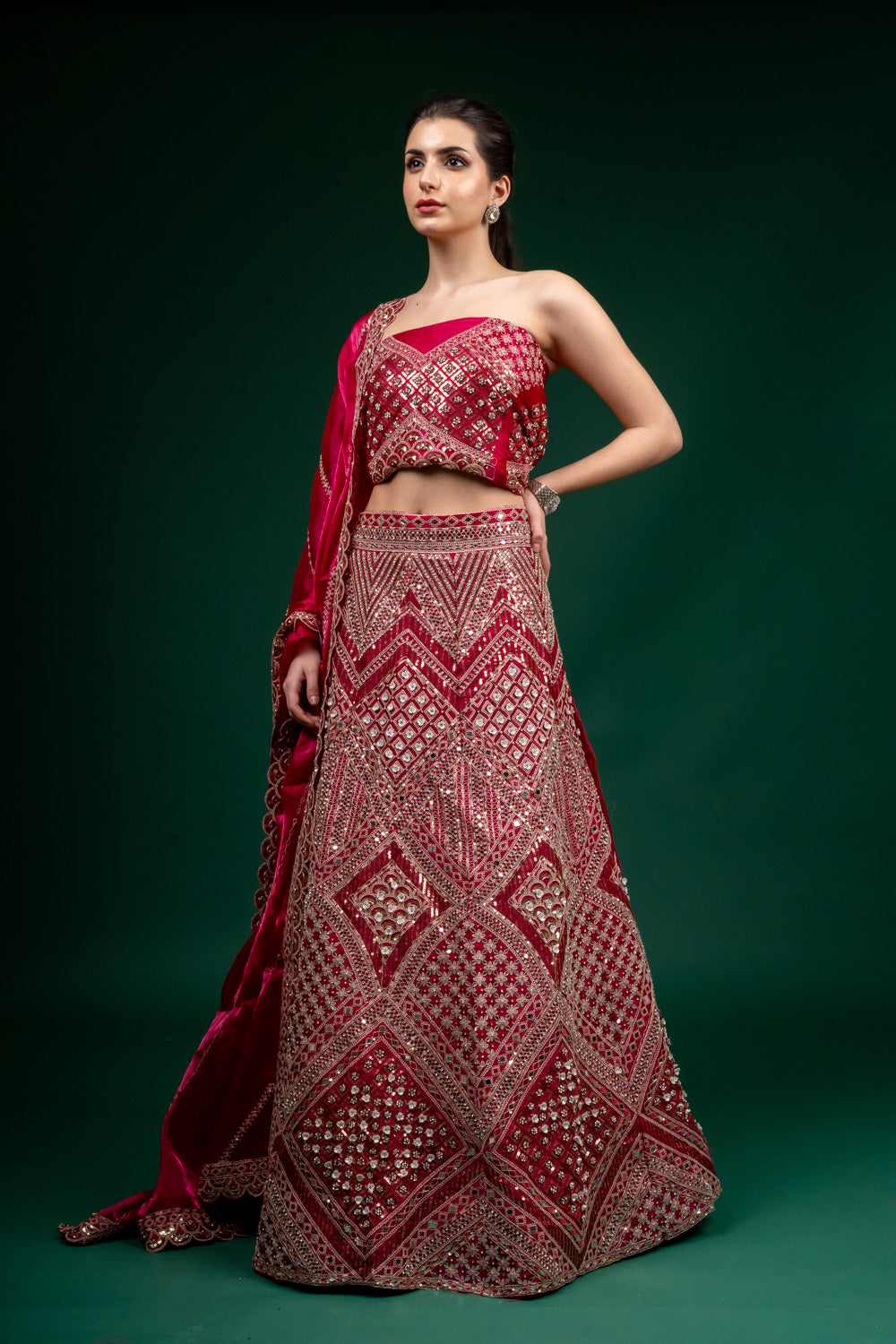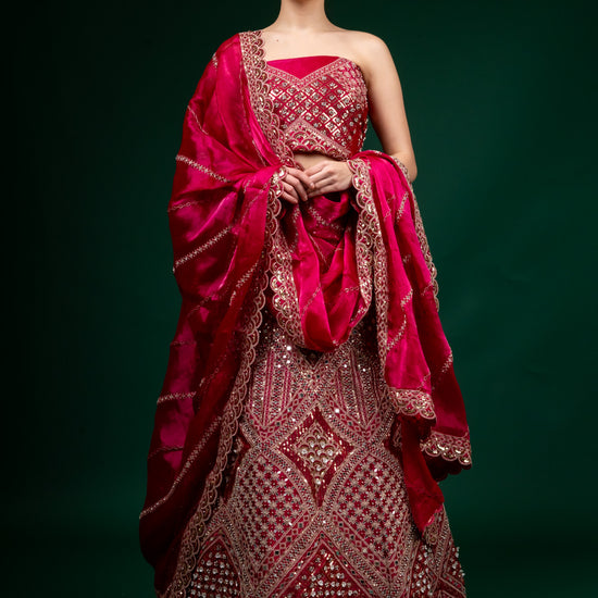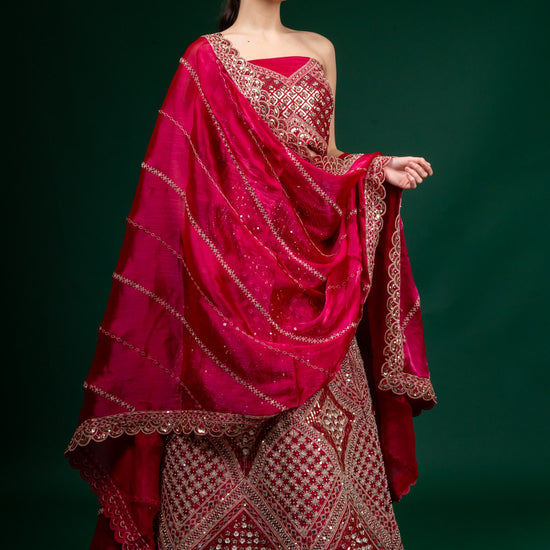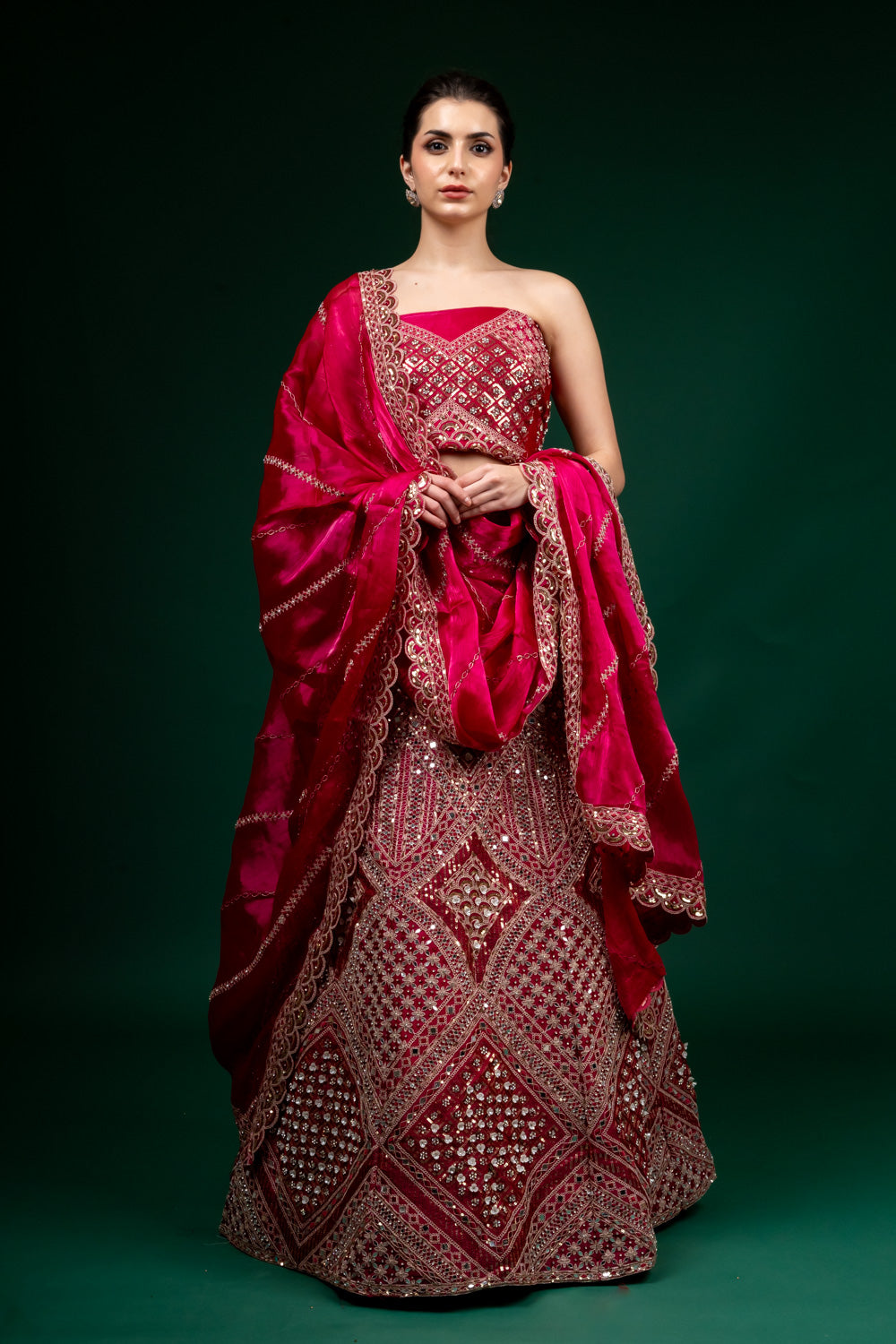Panna Maroon Zarkan, Zari Threadwork Embroidery & Sequence Organza Lehenga Set With Unstitched Choli Set