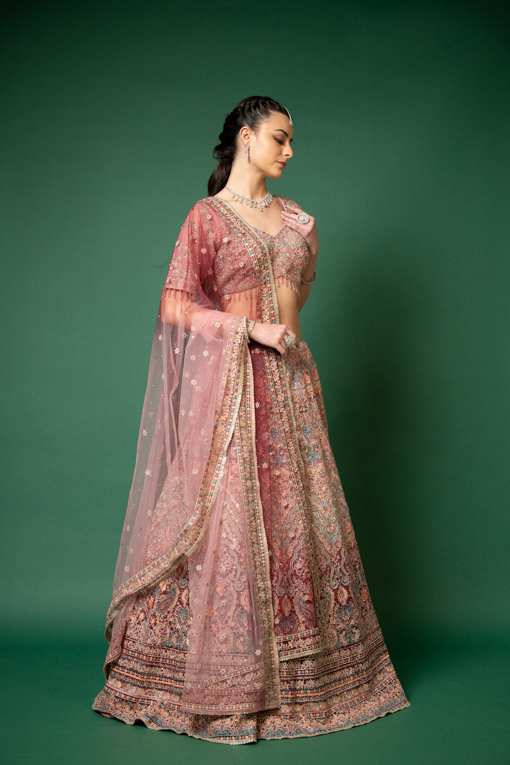 This elegant lehenga, crafted from Net, is adorned with Threadwork, Embroidery, Zari, Zarkan, Mirror & Bead, Sequence Work, making it perfect for Party Wear. It's Gajari elevate its appeal. Follow Dry Wash/Dry Clean.
