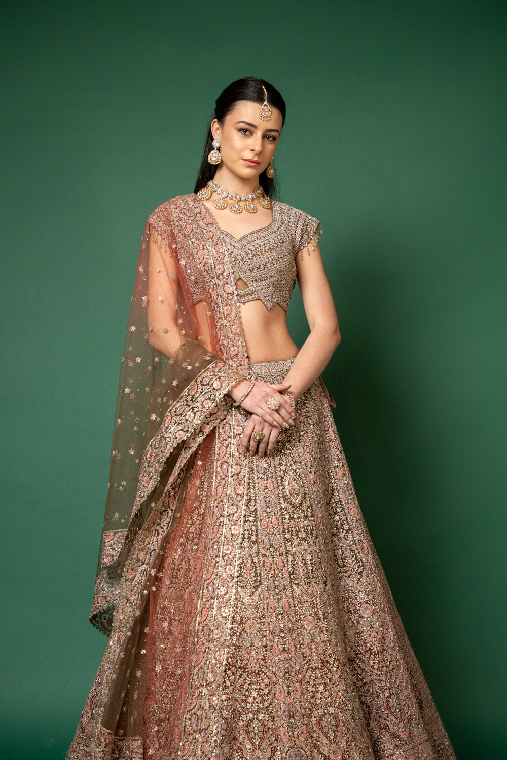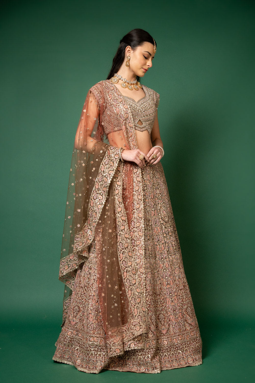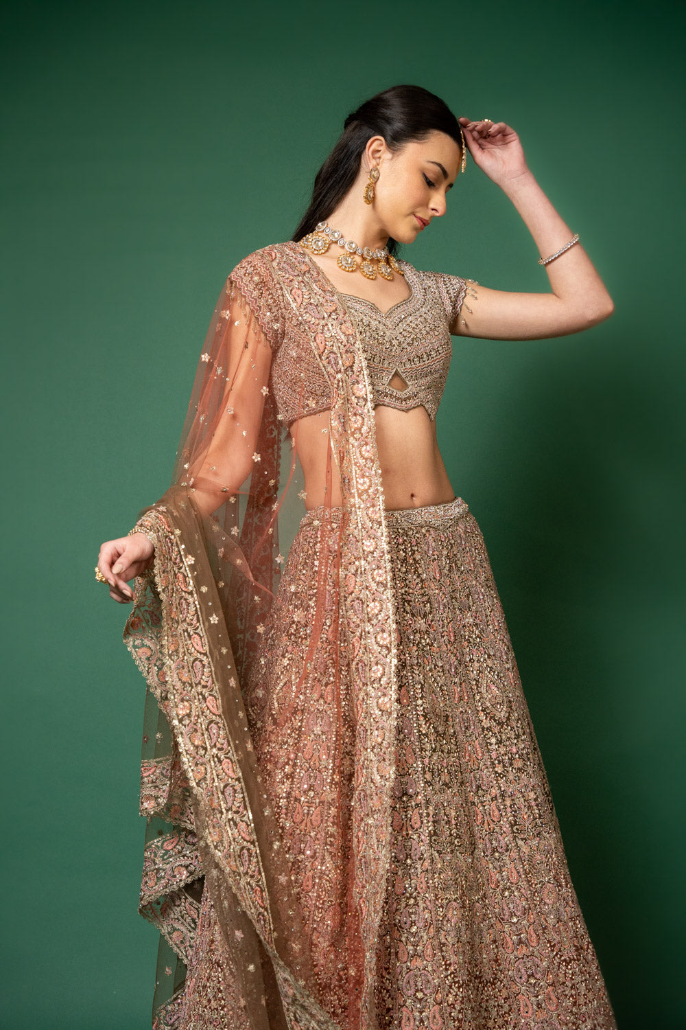 This elegant lehenga, crafted from Net, is adorned with Threadwork, Embroidery, Zari, Zarkan, Mirror & Bead, Sequence Work, making it perfect for Party Wear. It's Peach elevate its appeal. Follow Dry Wash/Dry Clean.