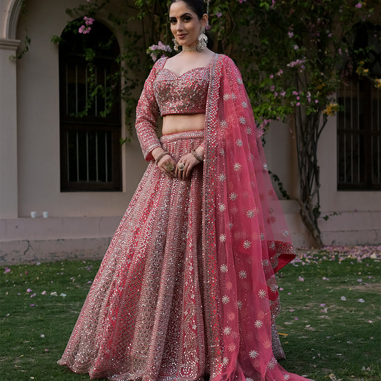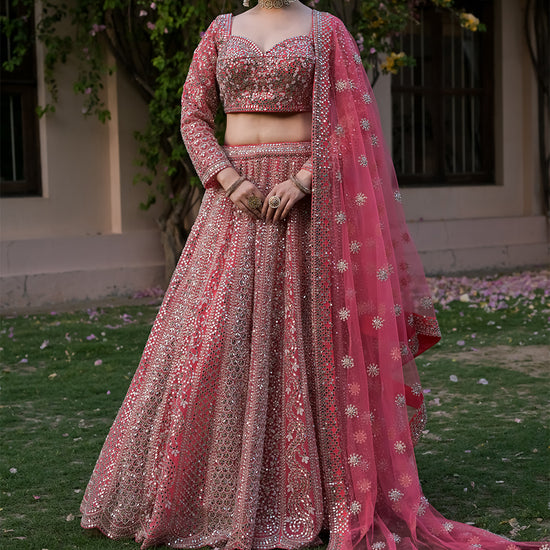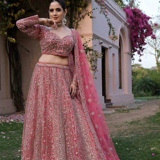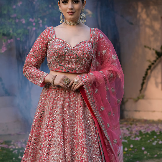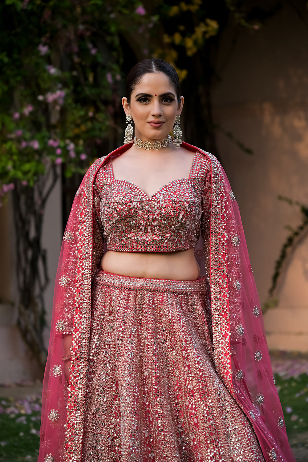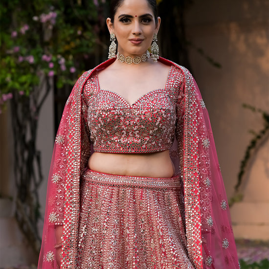 Featuring Bead, Kundan, Mirror & Zari, this Net lehenga is designed for Party Wear. Its Heavy finish ensures ease and grace. Keep it pristine with Dry Wash / Dry Clean.