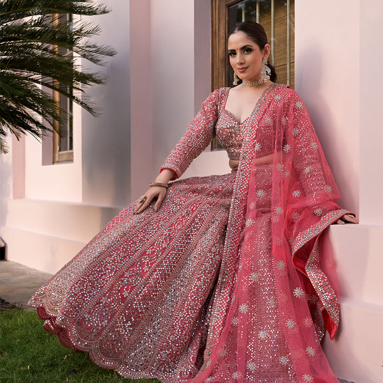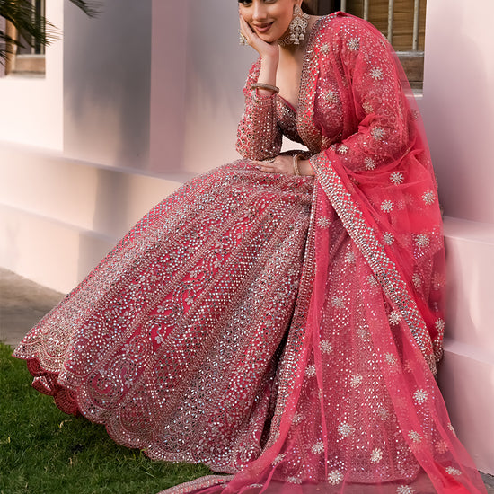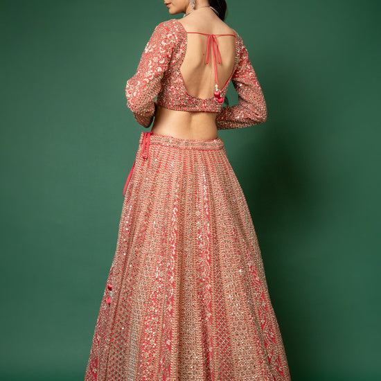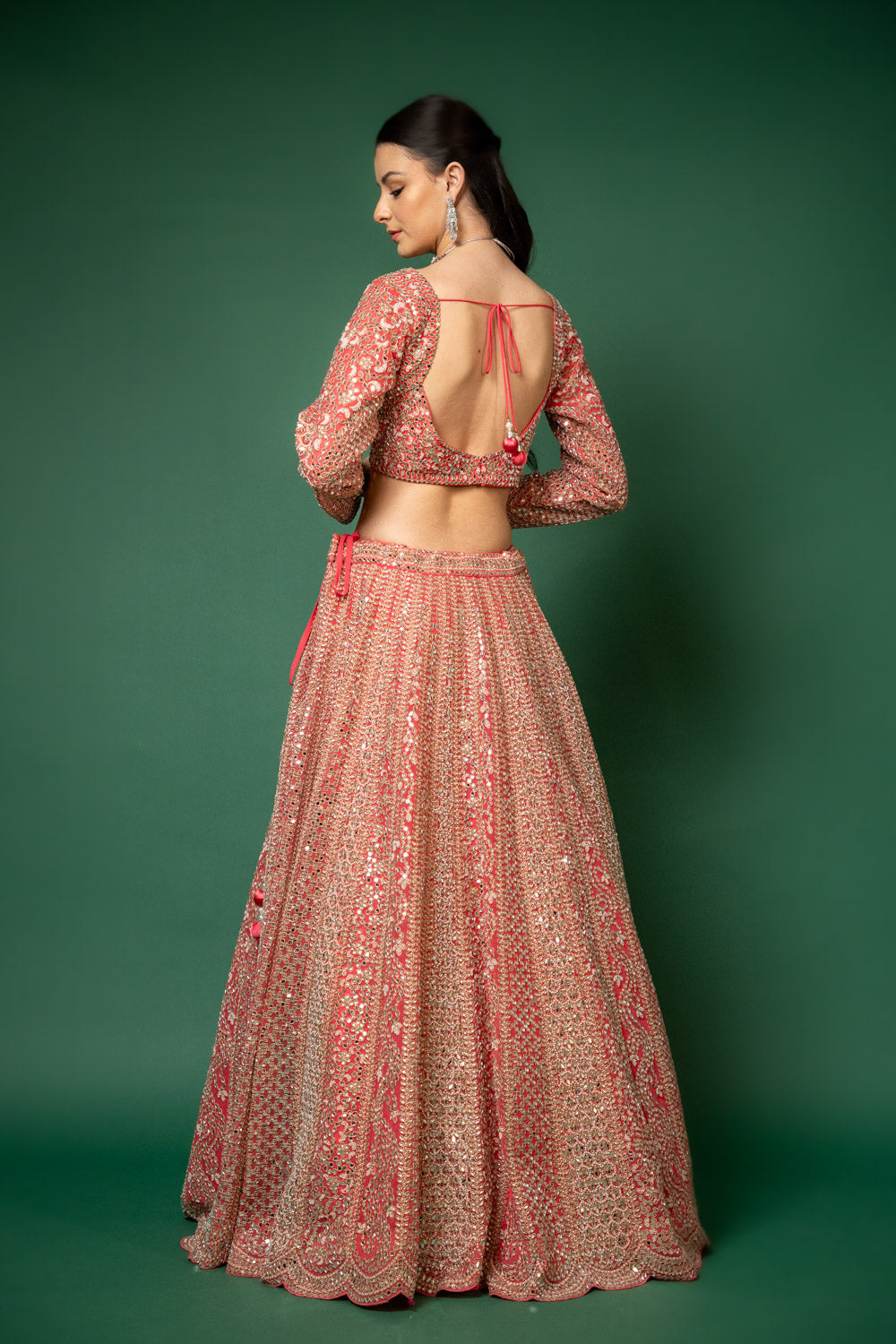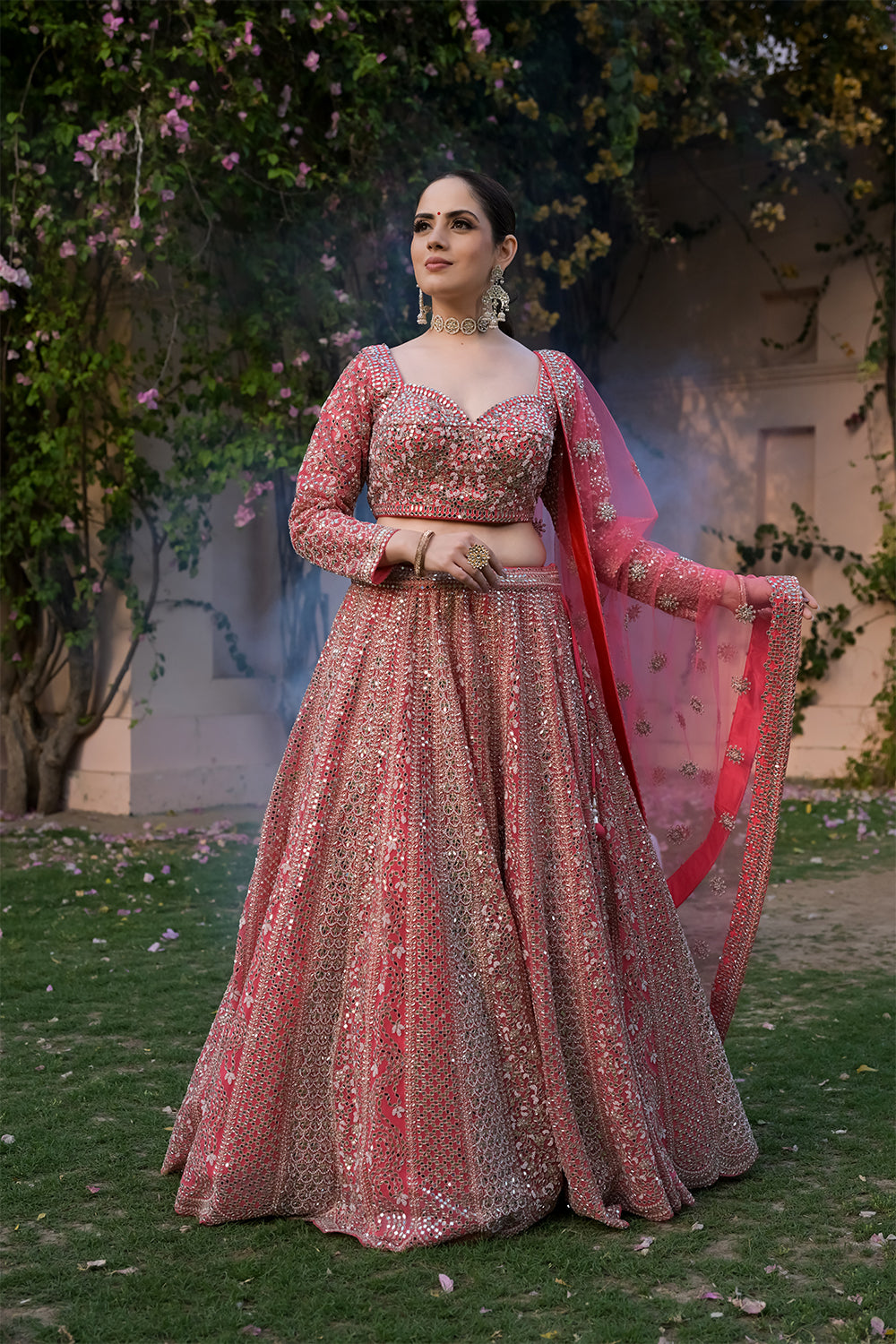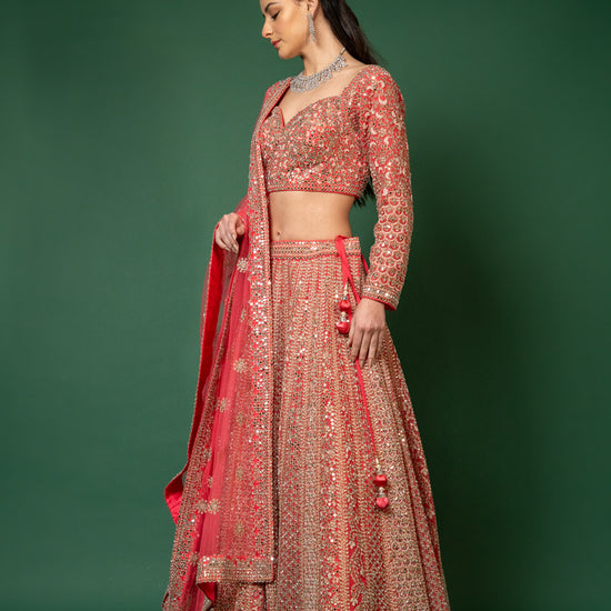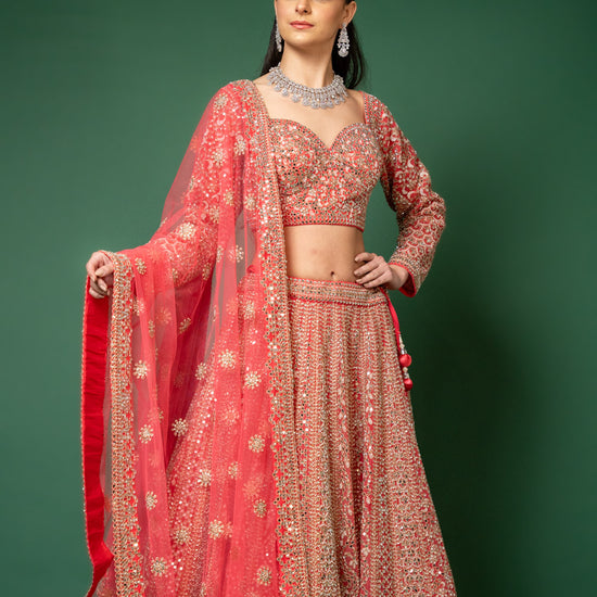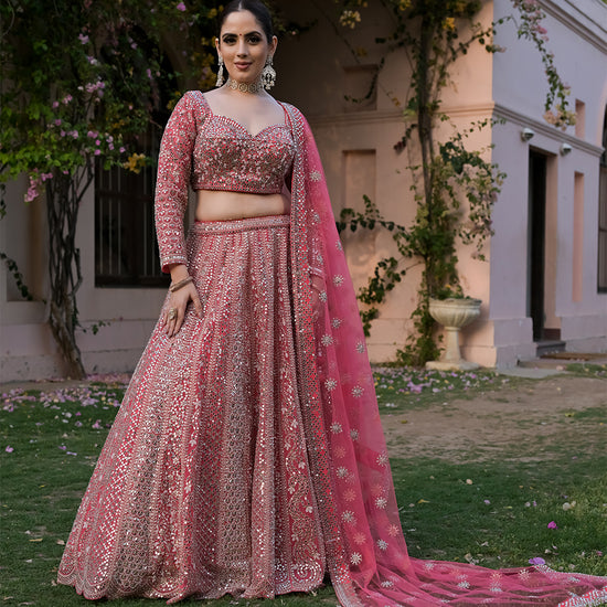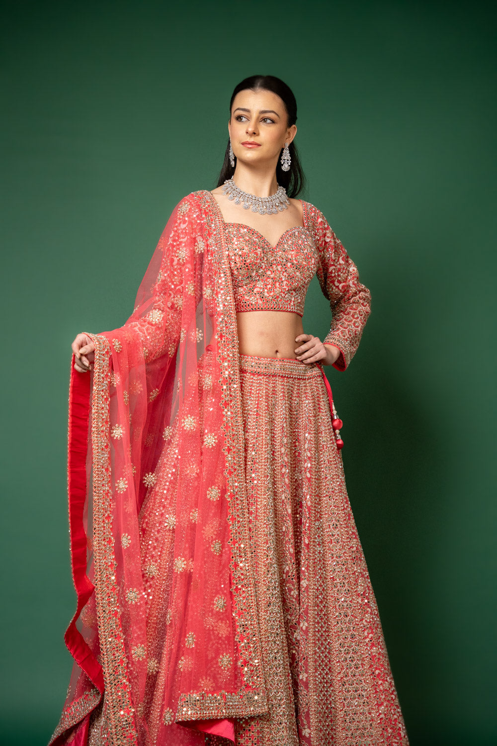 Panna Coral Net Lehenga Set And Net Dupatta With Readymade Blouse