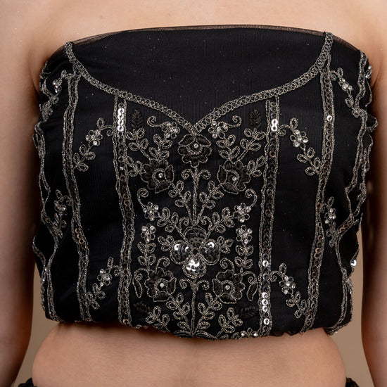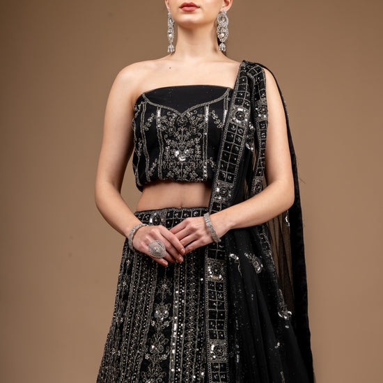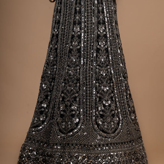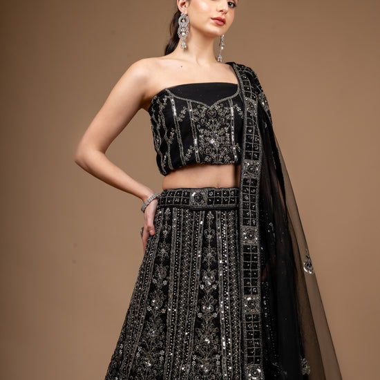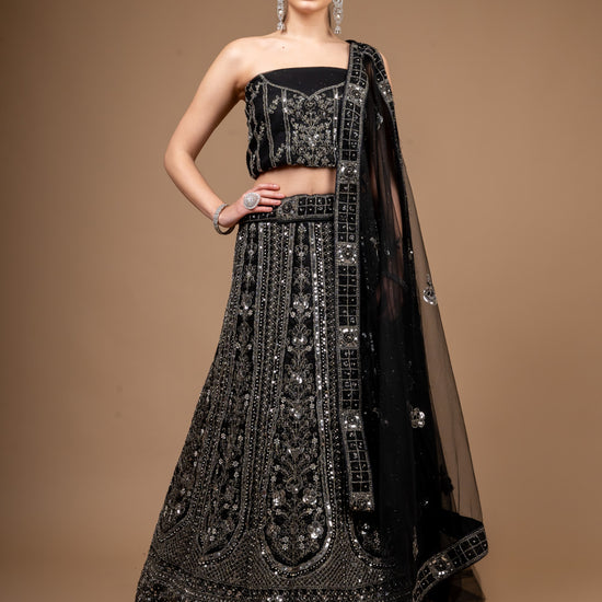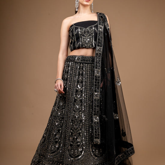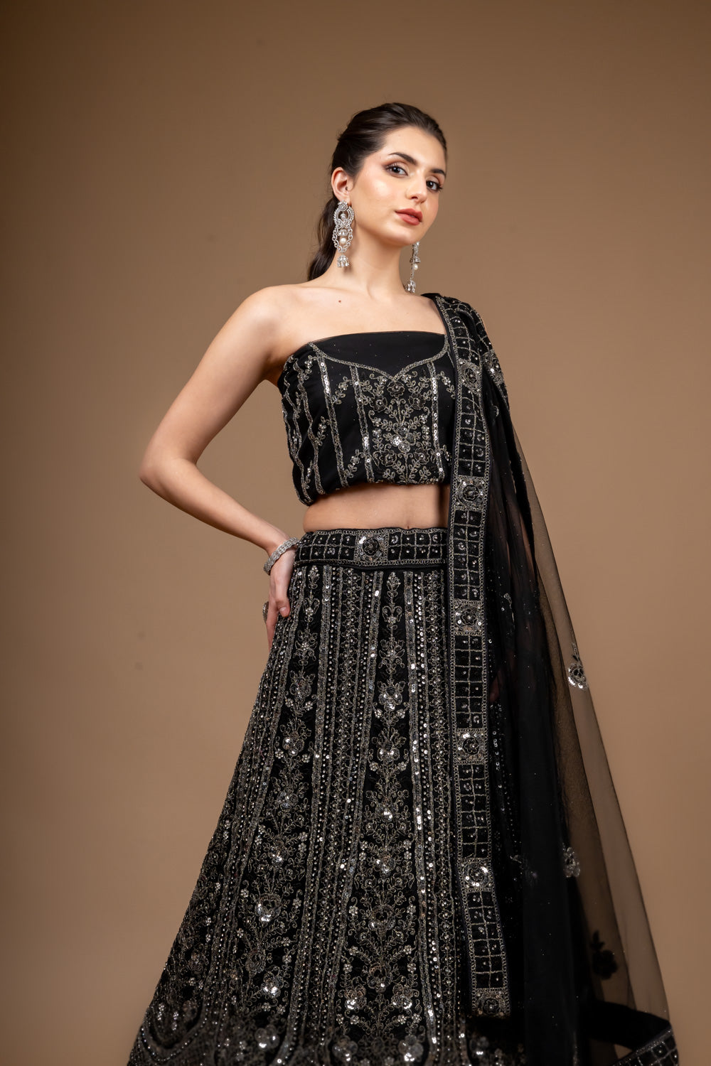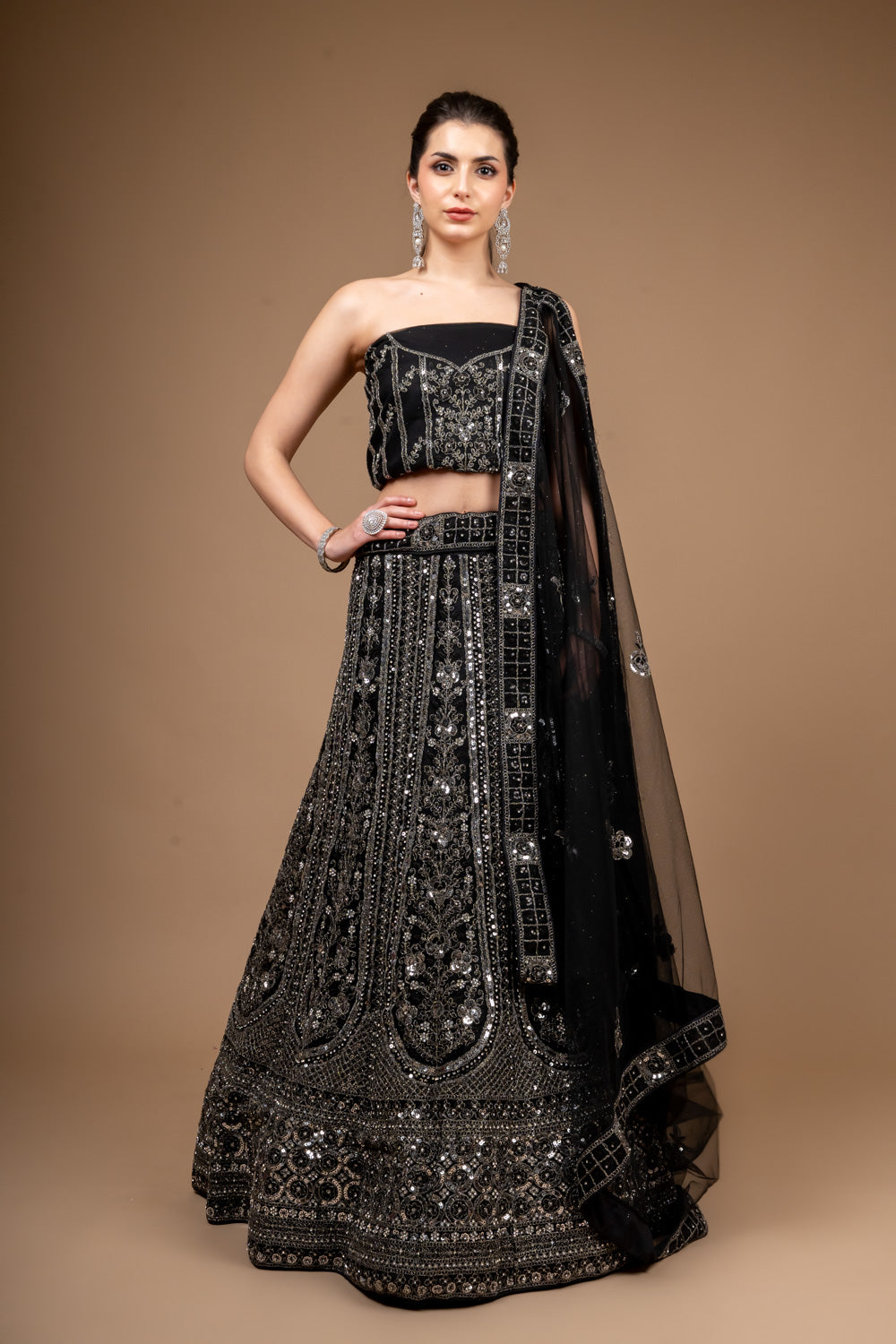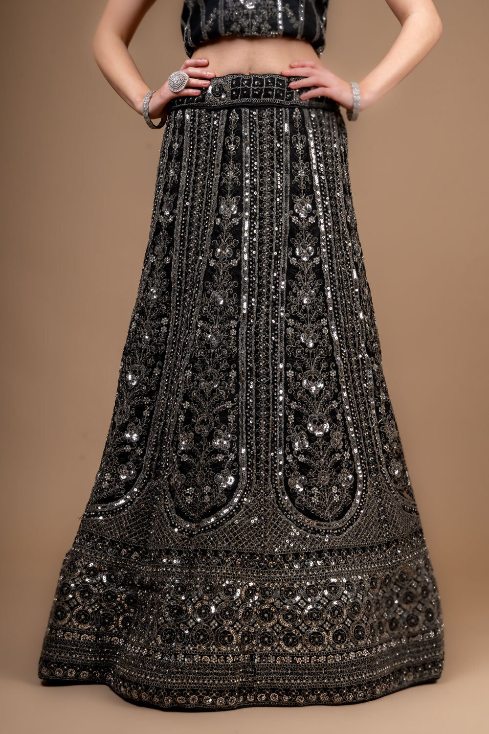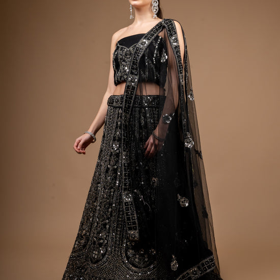 Panna Black Net Lehenga Set And Net Dupatta With Unstitched Blouse