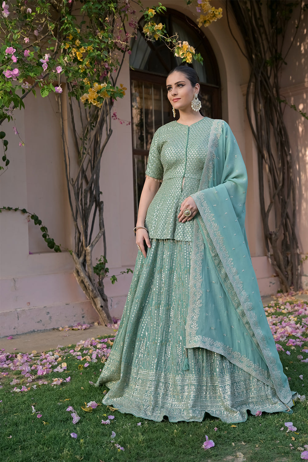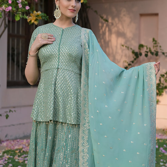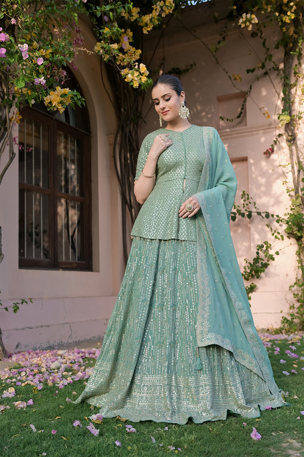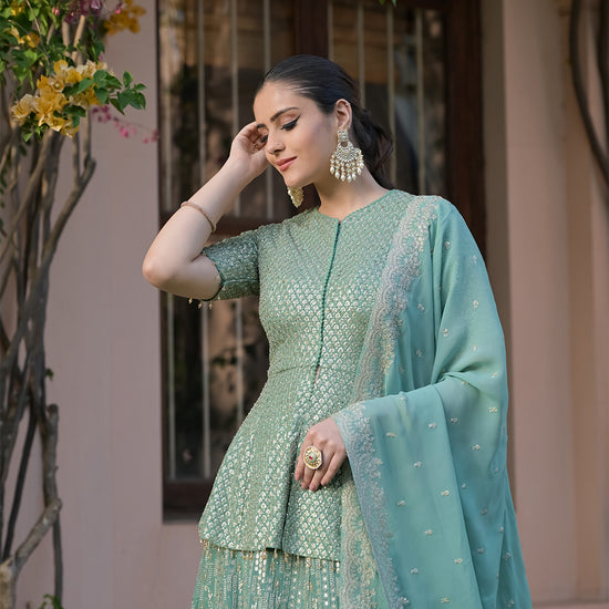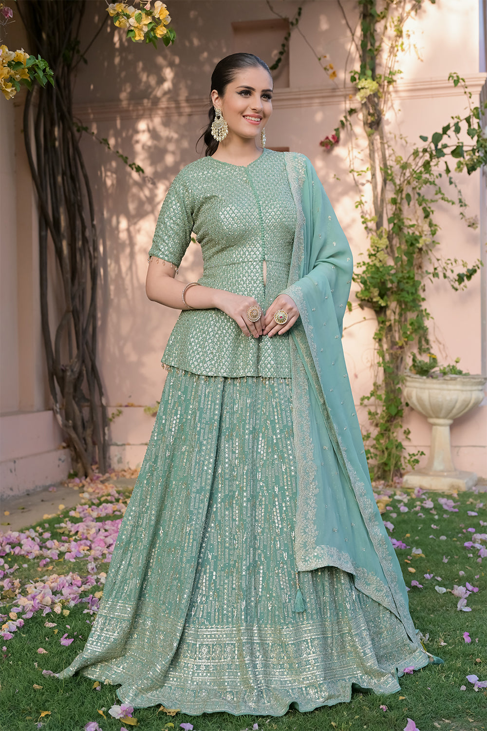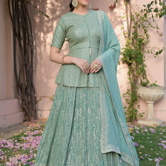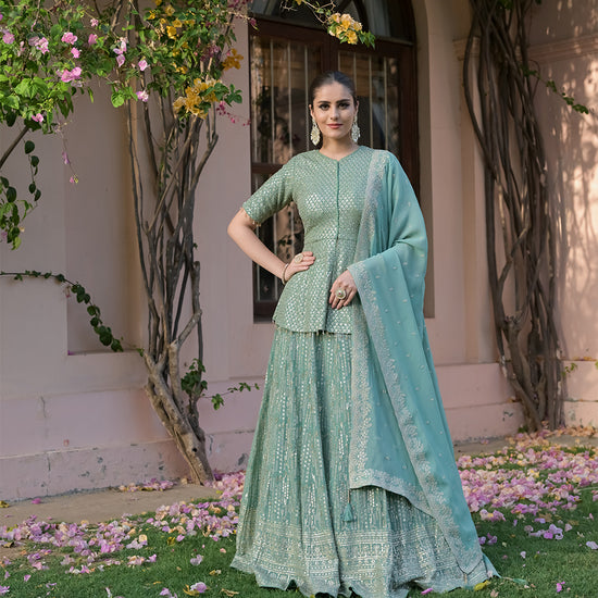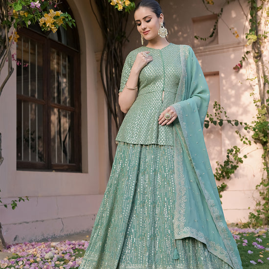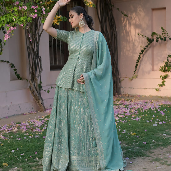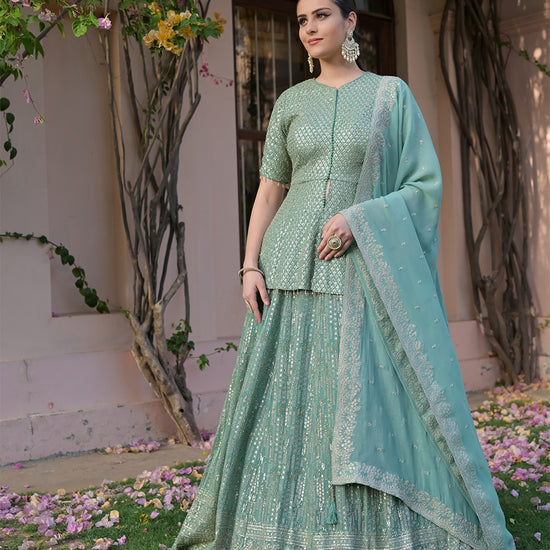Panna Sea Green Georgette Readymade Lehenga Set With Georgette Dupatta