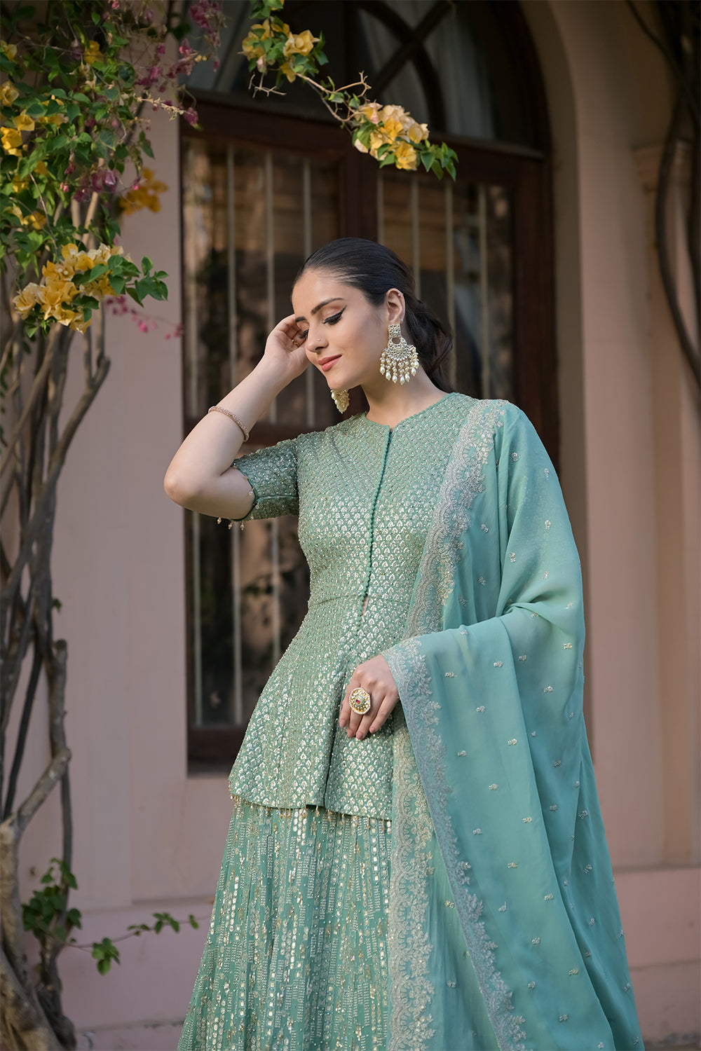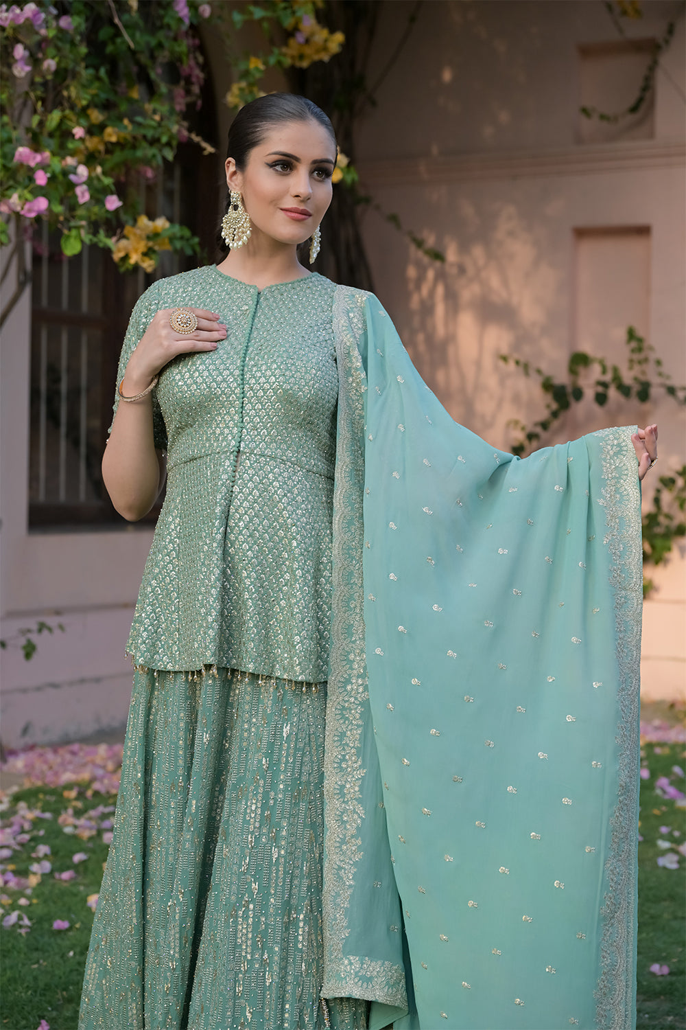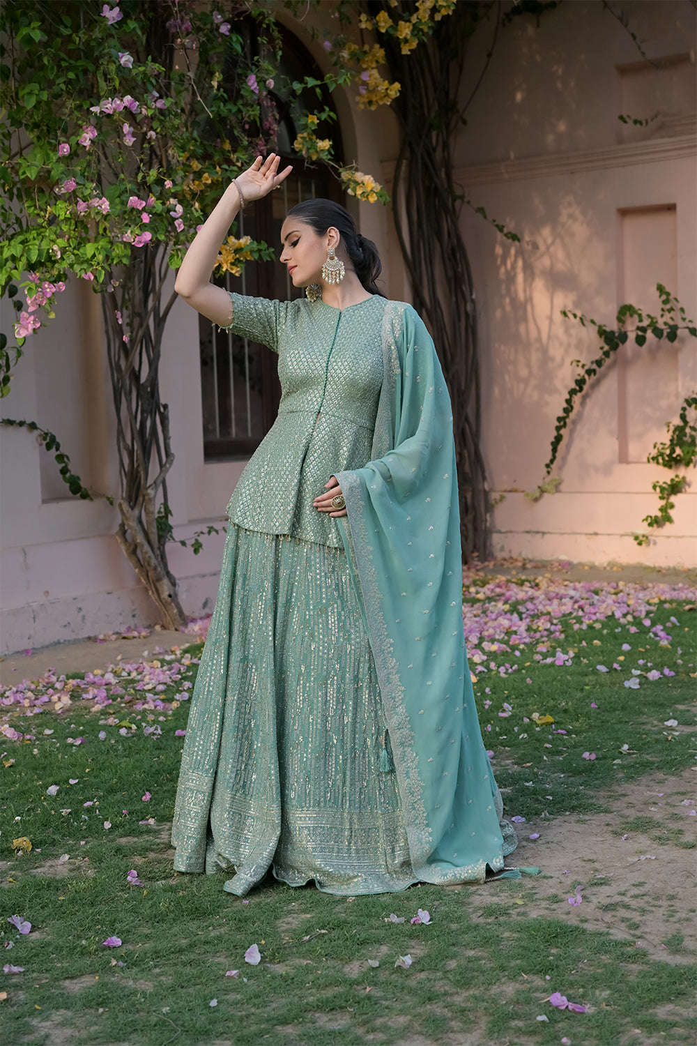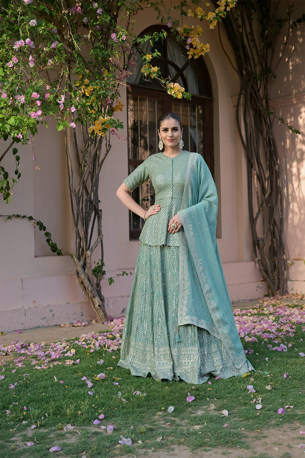 Panna Sea Green Georgette Readymade Lehenga Set With Georgette Dupatta