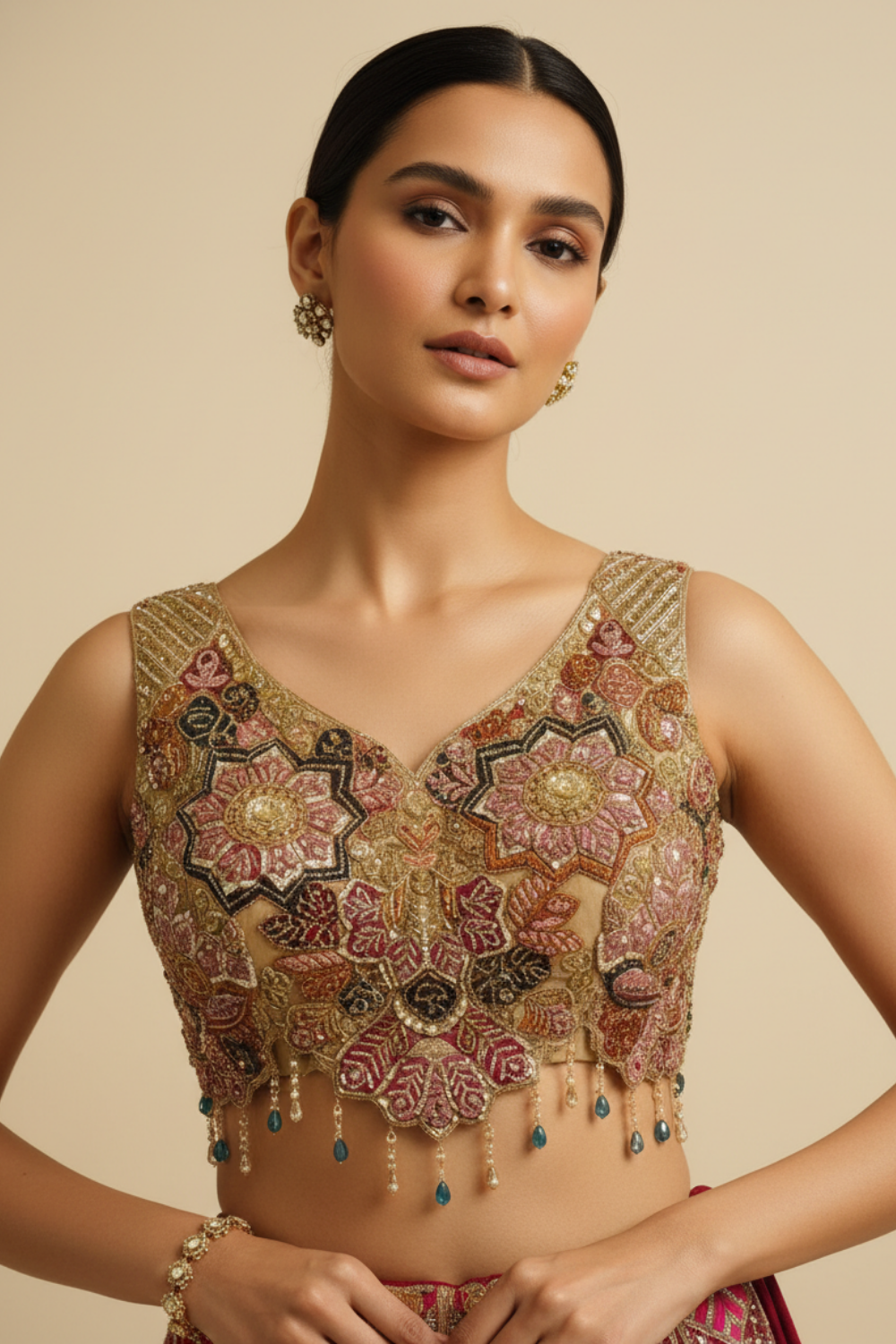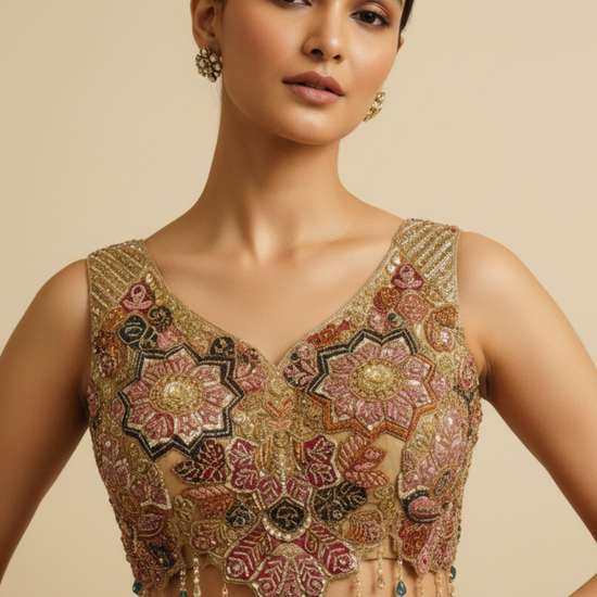 Work : Gotta patti, Mirror work, Cutdana, Bead work, Sequence work