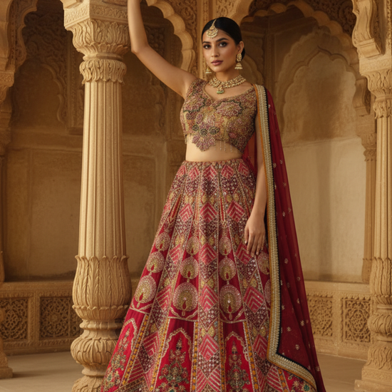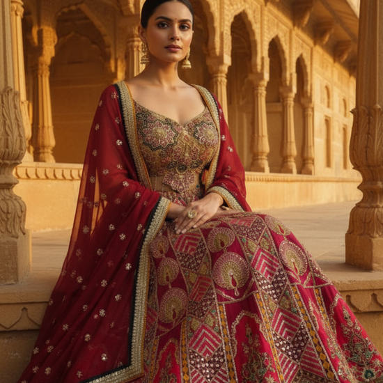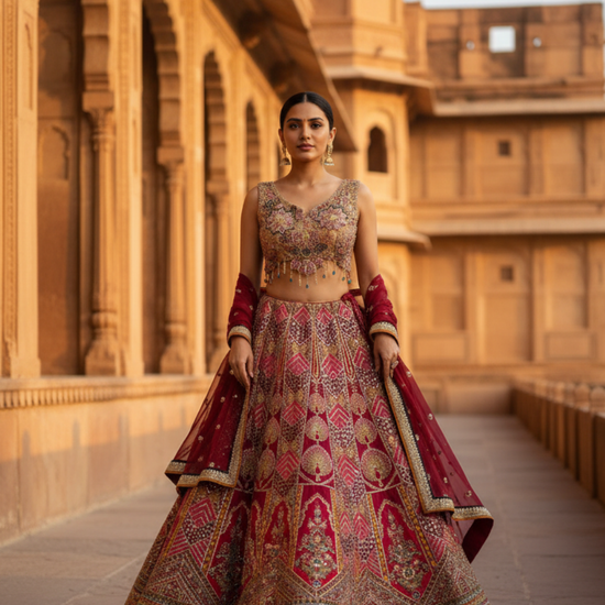 Crafted from Net, this lehenga with Gotta patti, Mirror work, Cutdana, Bead work, Sequence work is ideal for Party Wear. Its Lightweight feel ensures both comfort and style. Dry Wash / Dry Clean recommended.