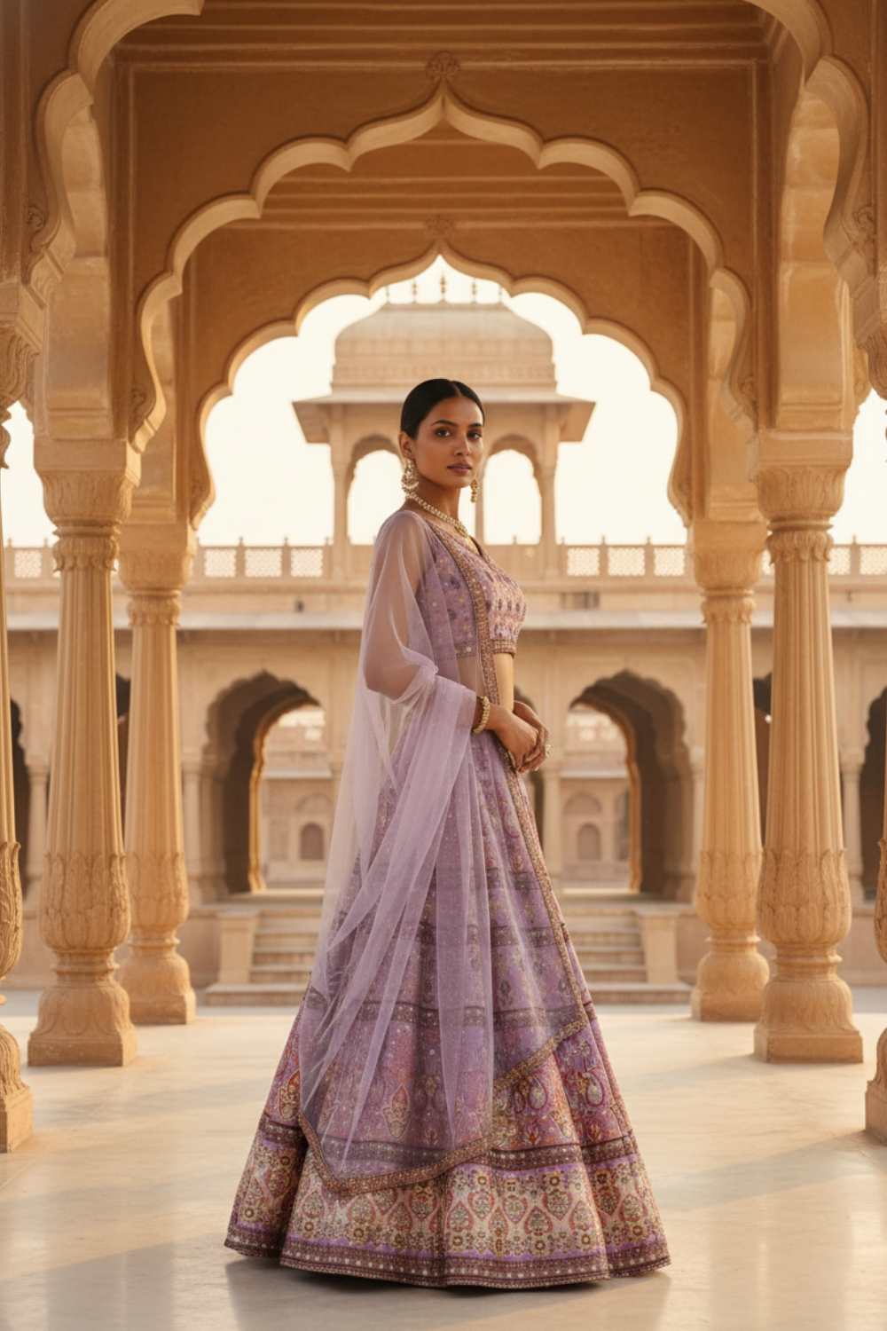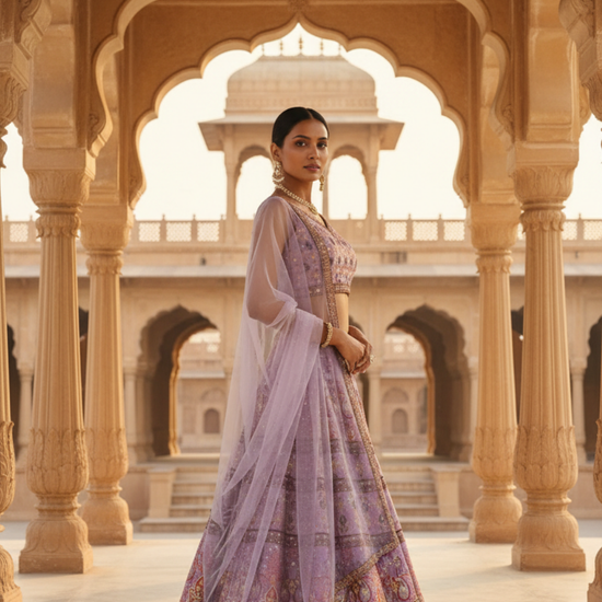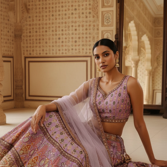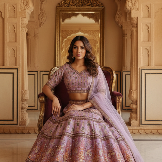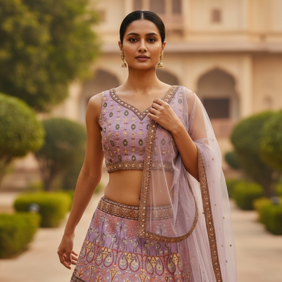 Panna Mauve Cotton Silk Lehenga Set And Net Dupatta With Readymade Blouse