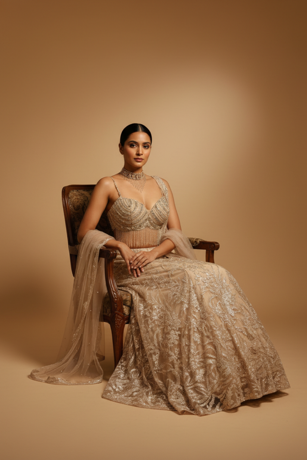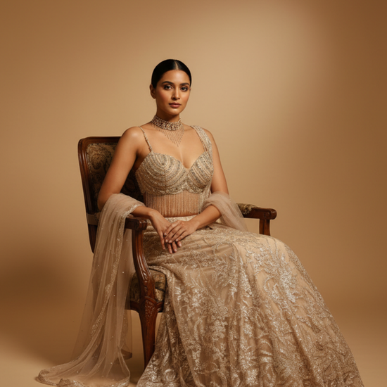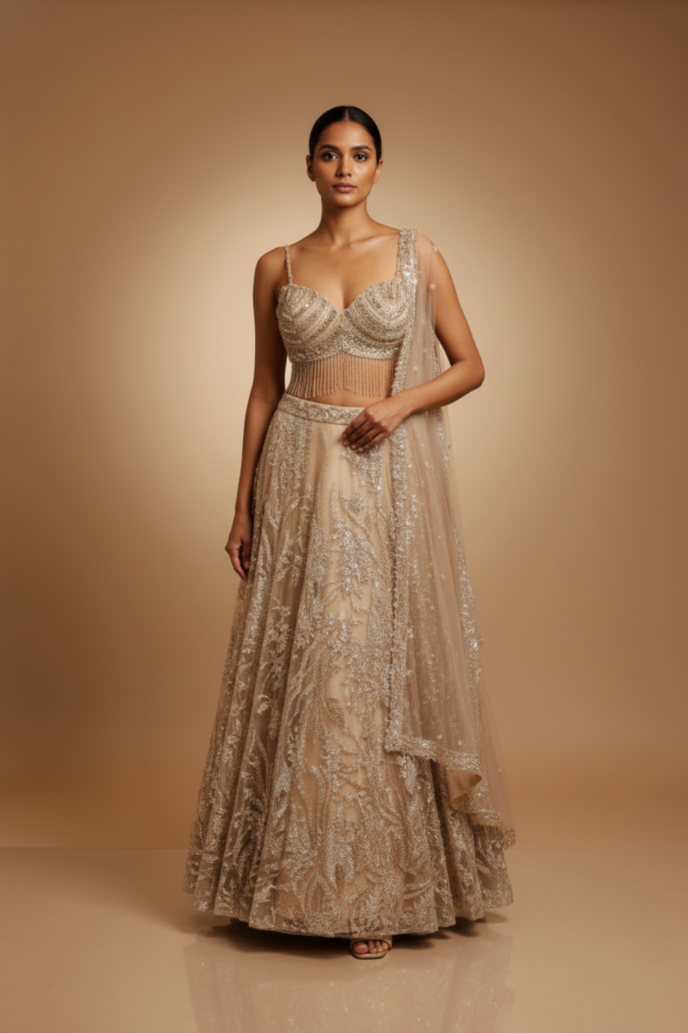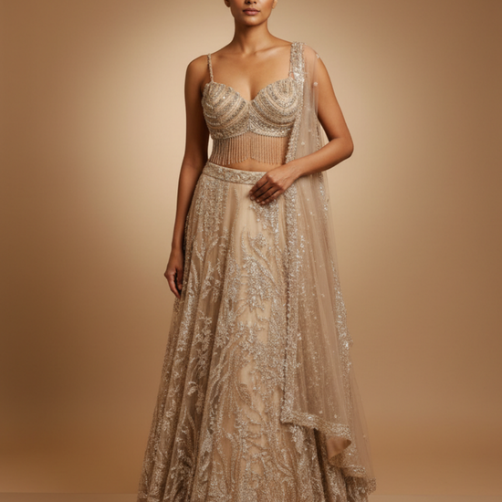 Tussar Net Lehenga Set And Net Dupatta With Readymade Blouse