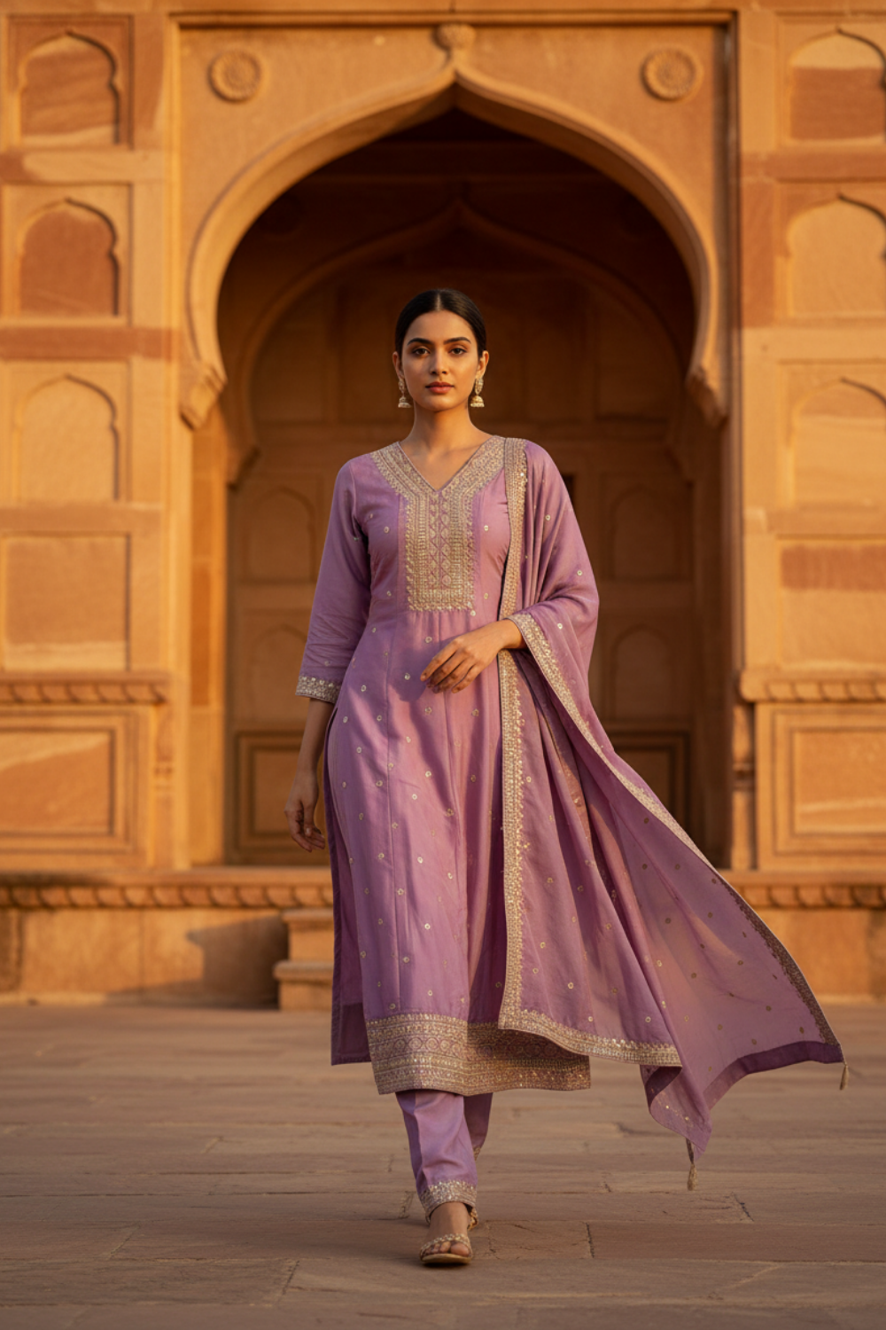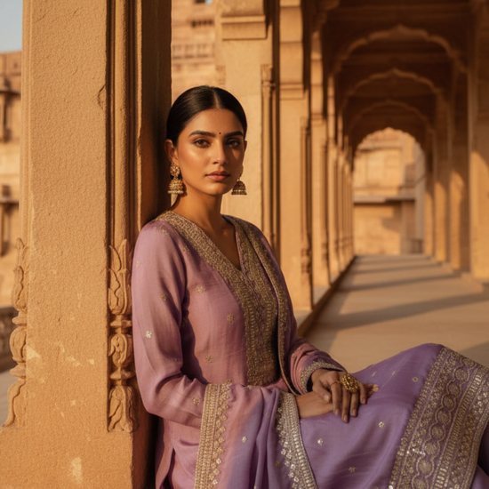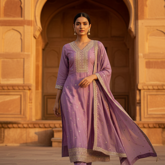 Panna Mauve Cotton Readymade Suit And Pant With Cotton Dupatta