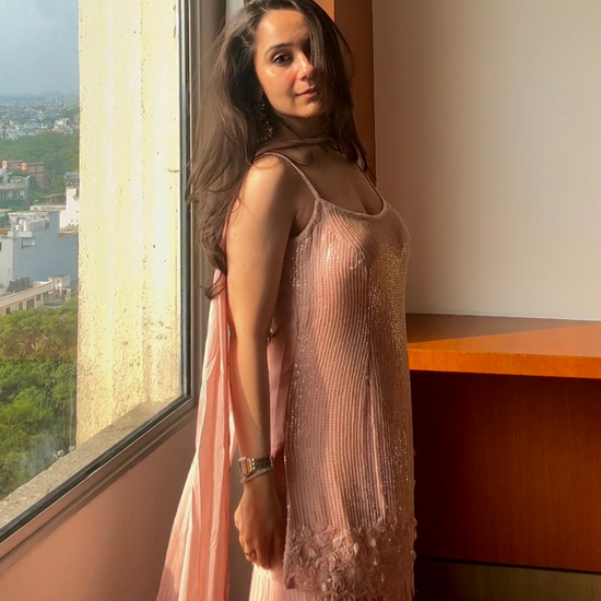 Panna Peach Georgette Readymade Sharara Set With Georgette Dupatta