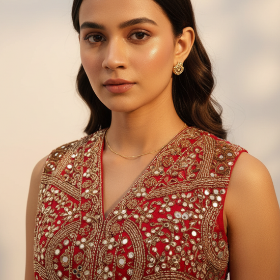 SKU : RM1578-RW-621149-Tussar Red-Size L