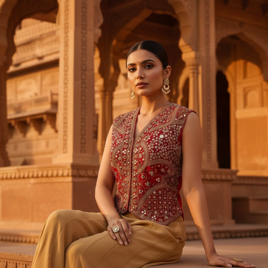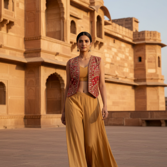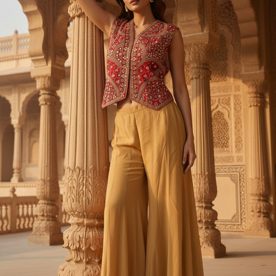 Tussar Red Georgette Readymade Short Top Sharara Set – The Panna Shop
