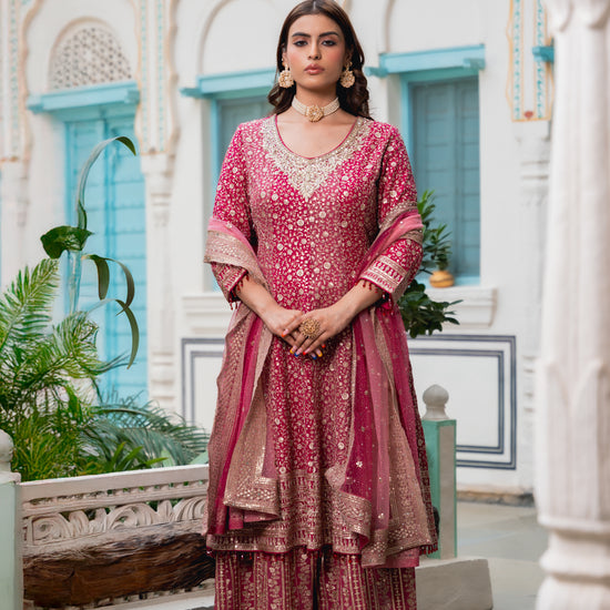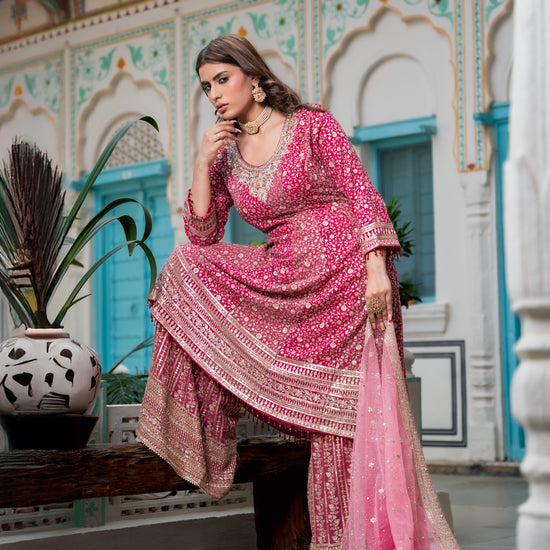 Panna Rani Georgette Readymade Sharara Set With Georgette Dupatta
