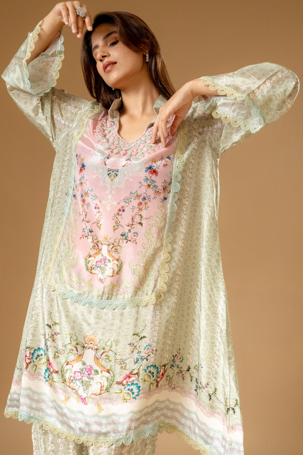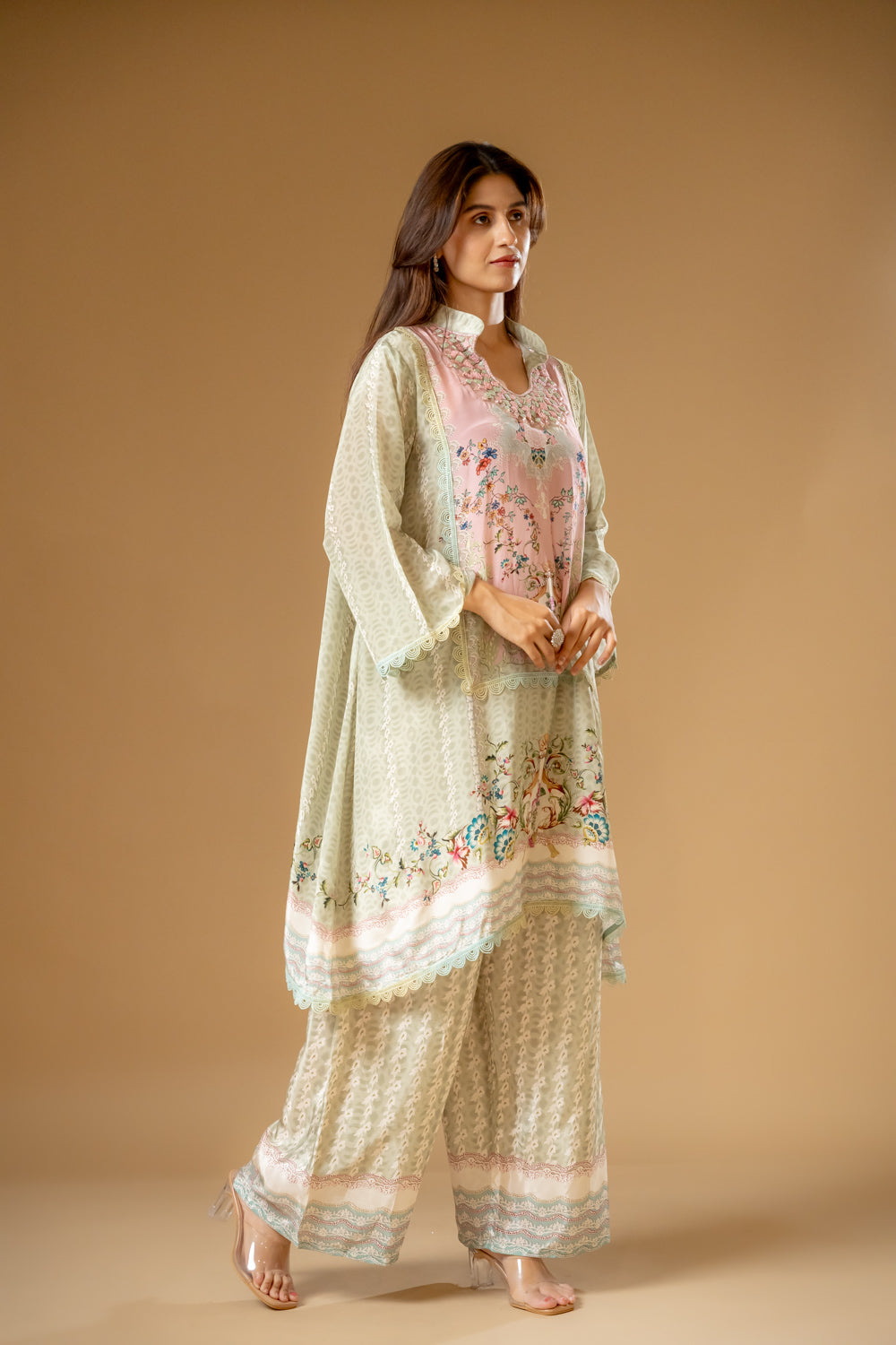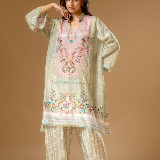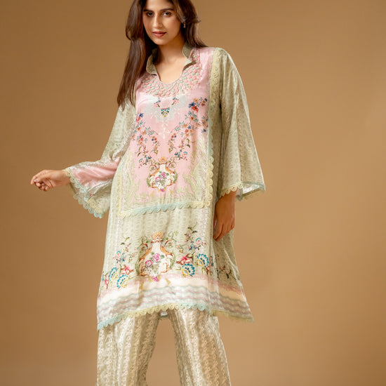 Work : Cutdana, Floral Print, Sequence & Threadwork