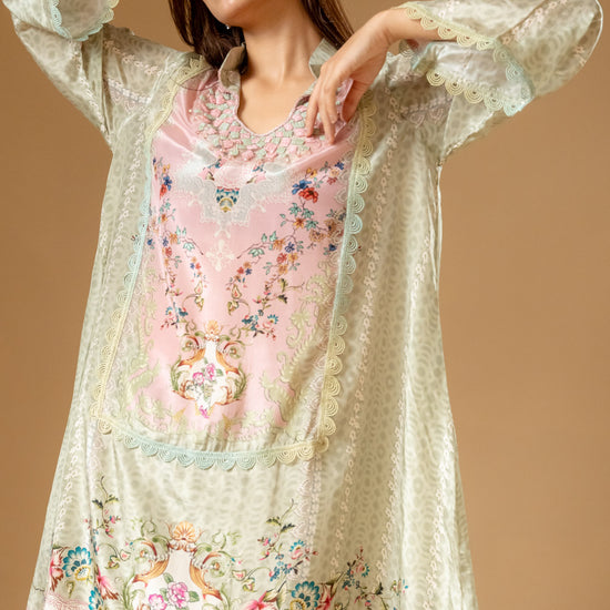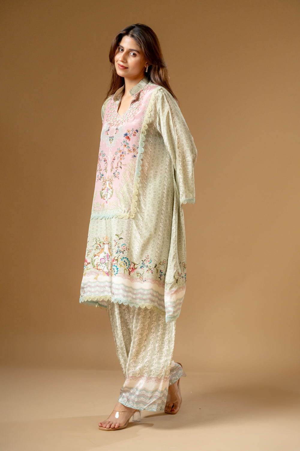 Featuring Cutdana, Floral Print, Sequence & Threadwork, this Crepe suit is crafted for Formal Occasion. Its Color Variations and pre-stitching make it a go-to option. Dry Wash / Dry Clean recommended.