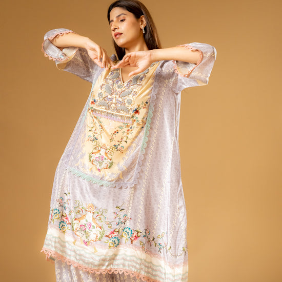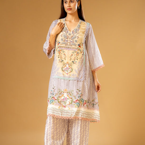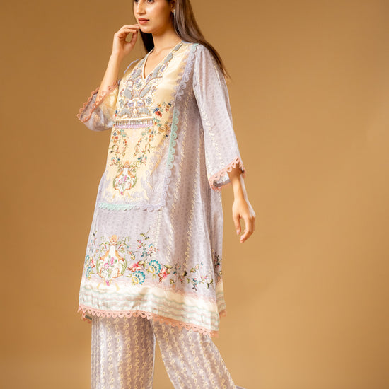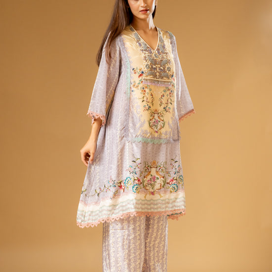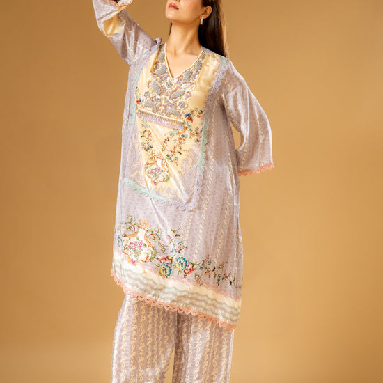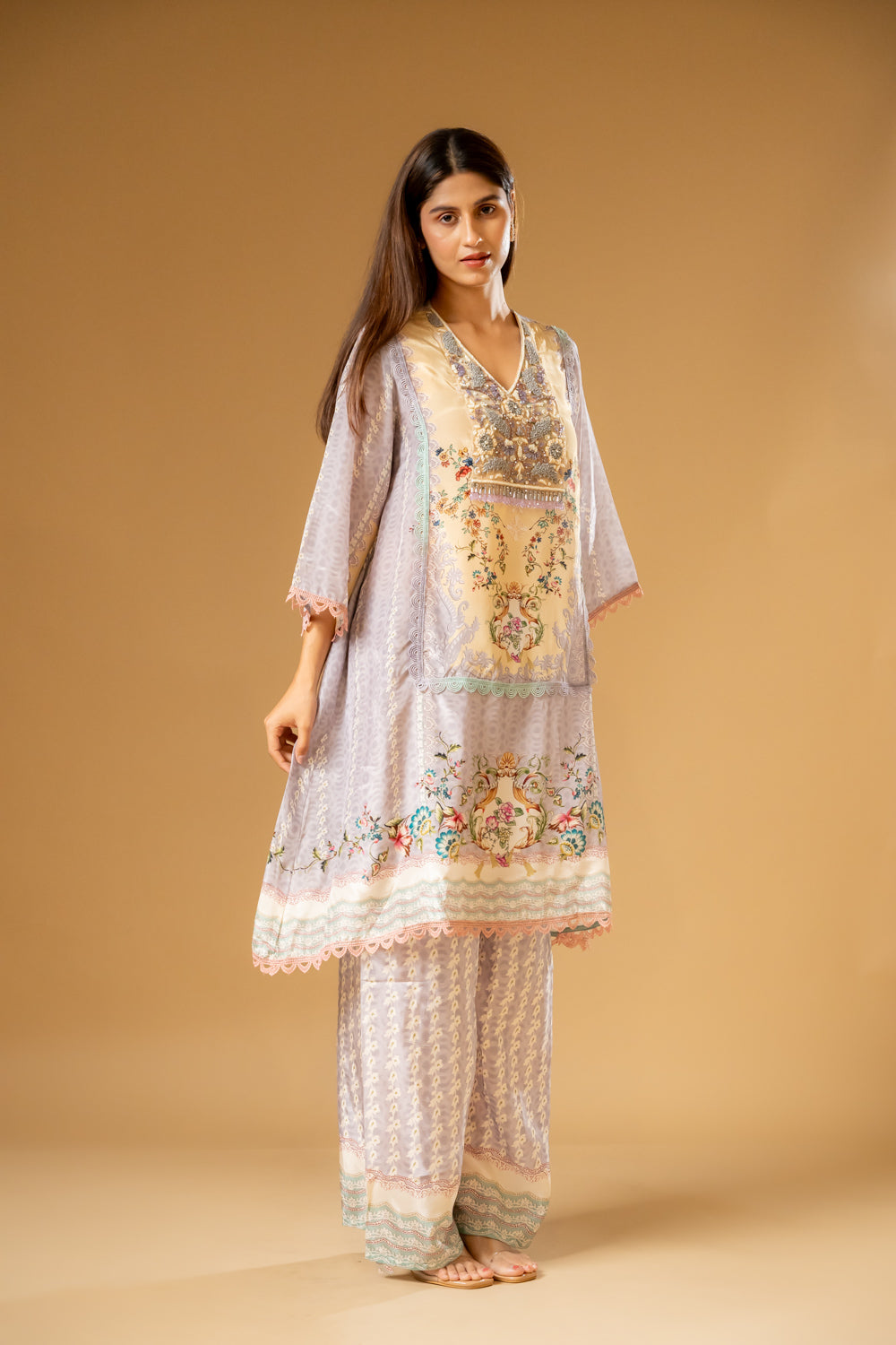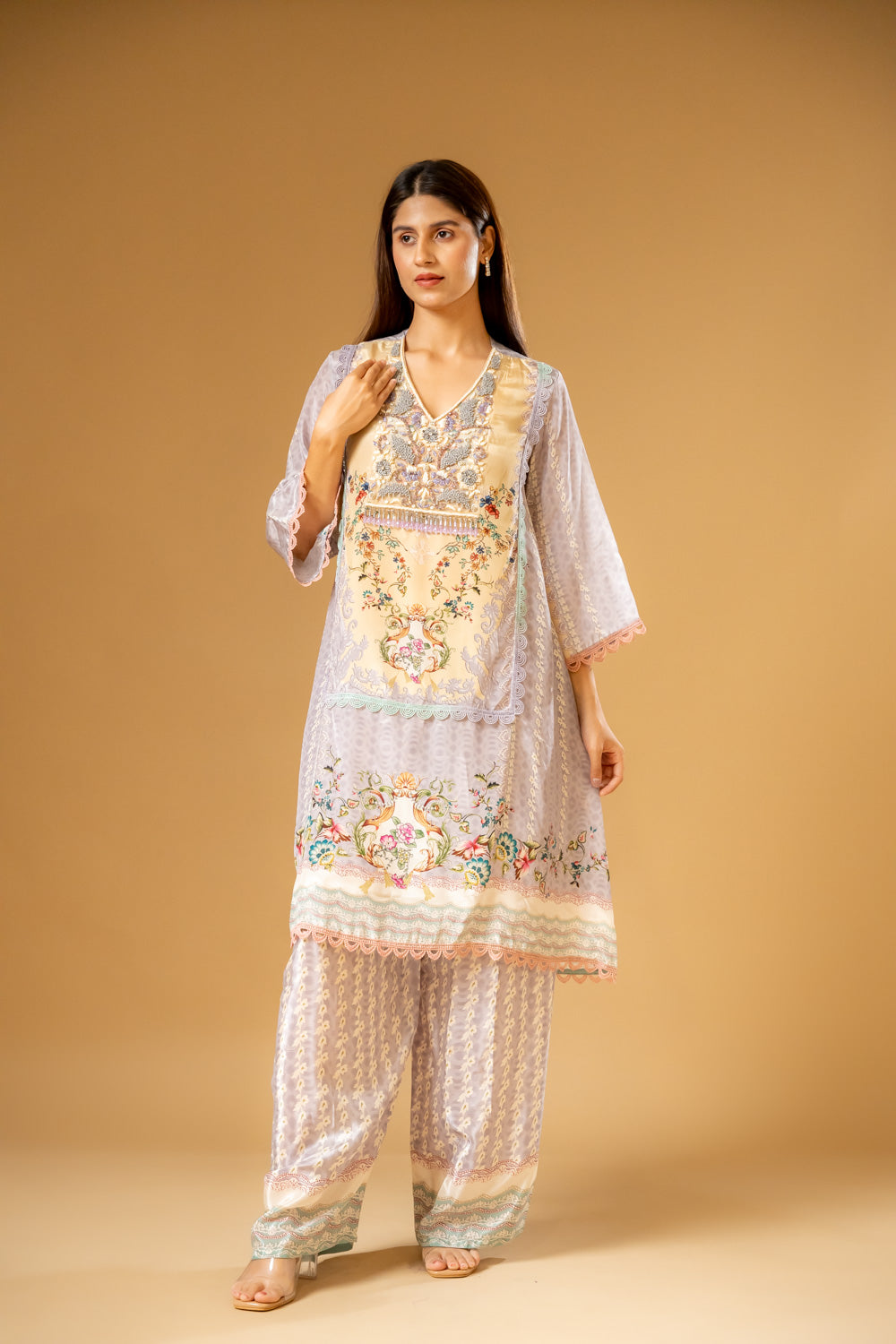 Panna Mauve Crepe Readymade Suit With Palazzo