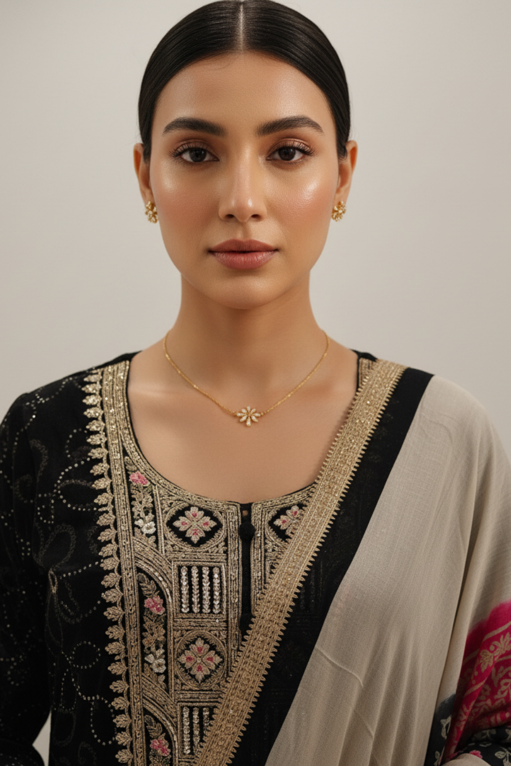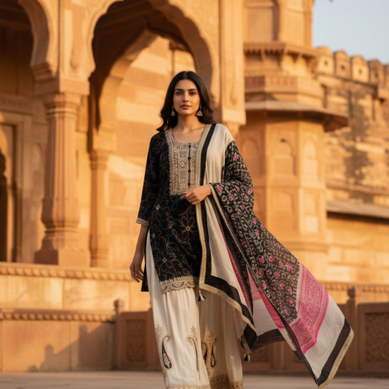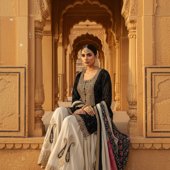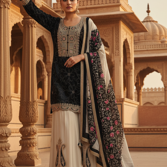 Panna Black Georgette Readymade Sharara Set With Georgette Dupatta