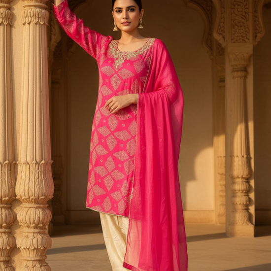 Panna Timeless Elegance Rani Crepe Readymade Suit And Pant With Chiffon Dupatta