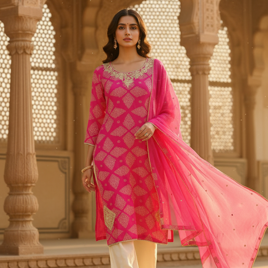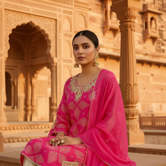 Showcase effortless elegance with this readymade suit crafted from luxurious Crepe fabric, known for its soft texture and graceful drape. The outfit features a vibrant Digital Print that adds a touch of contemporary charm, beautifully adorned with Bead work, shimmering Sequence accents, delicate Mirror embellishments, and fine Thread embroidery. Perfect for festive gatherings, parties, and elegant day events, this ensemble blends modern artistry with traditional detailing — a true expression of refined sophistication.