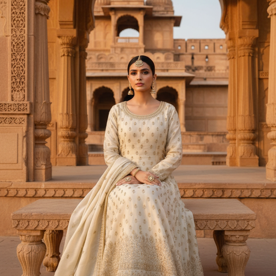 Pair With : Kundan or Pearl Jewelry for a Royal look