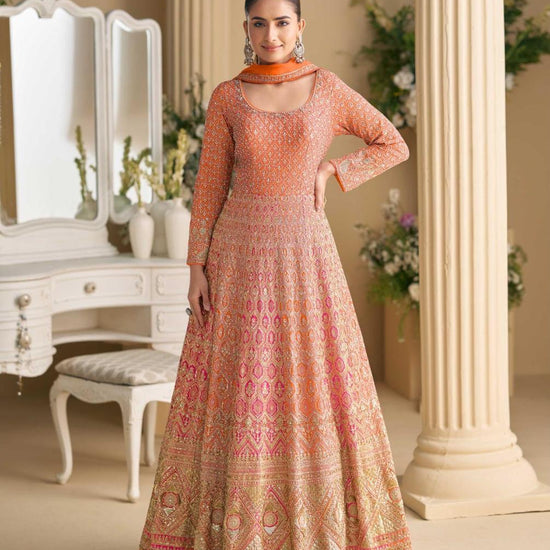 Panna Orange Georgette Readymade Suit With Georgette Dupatta