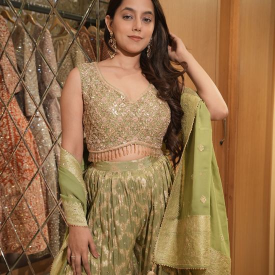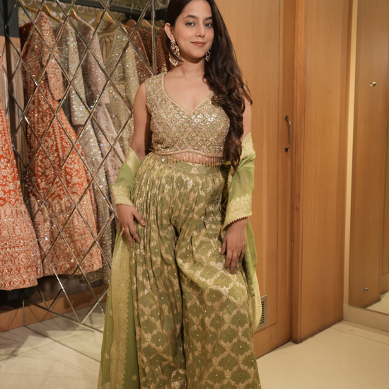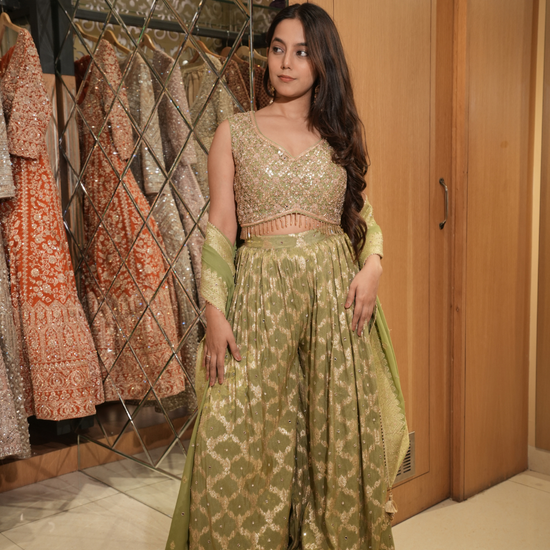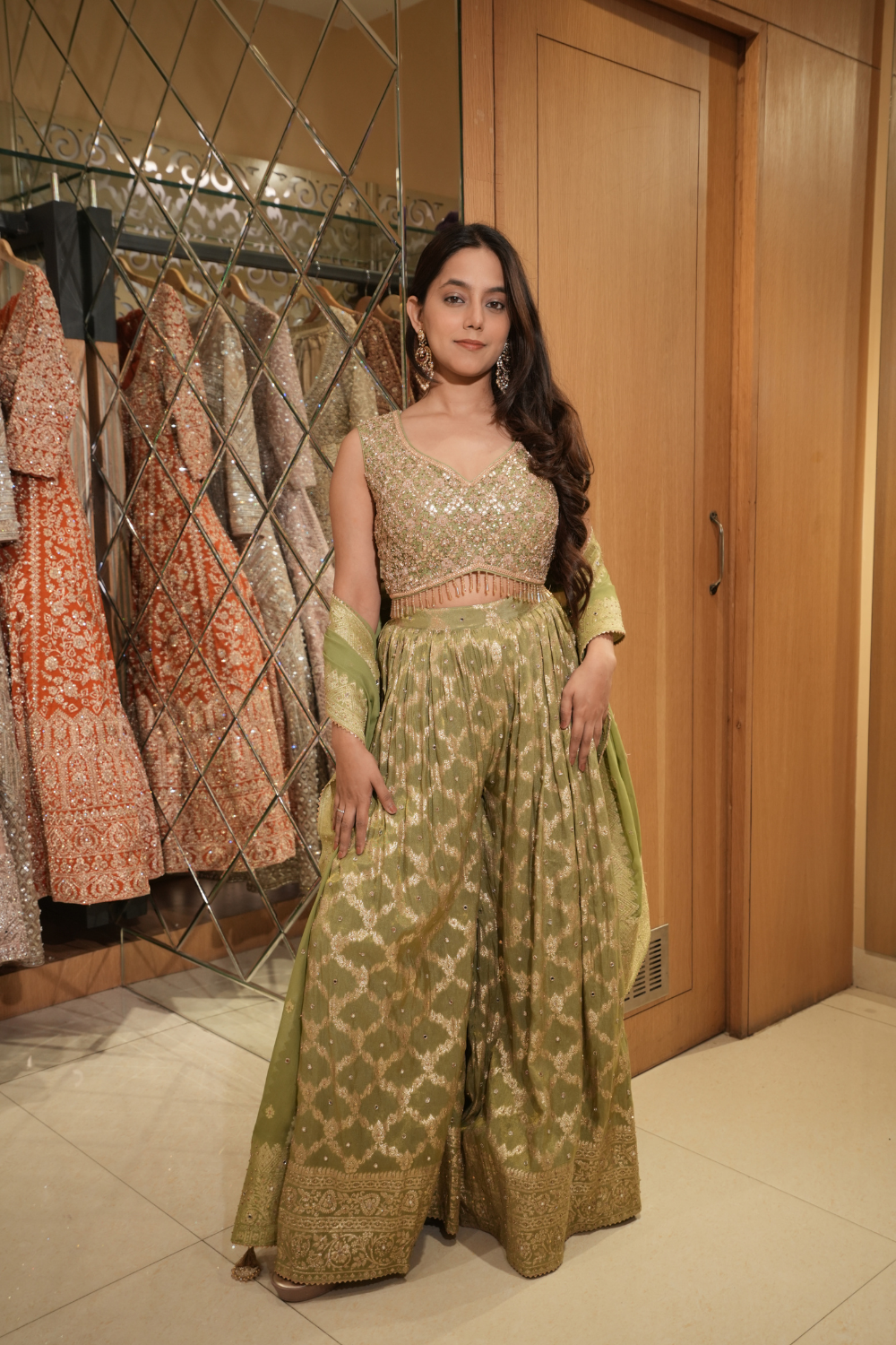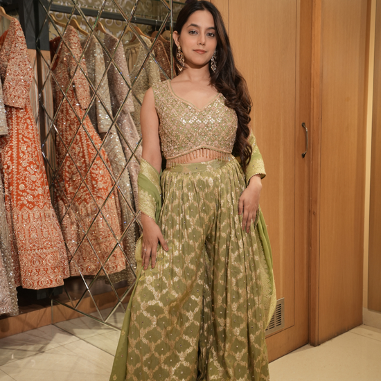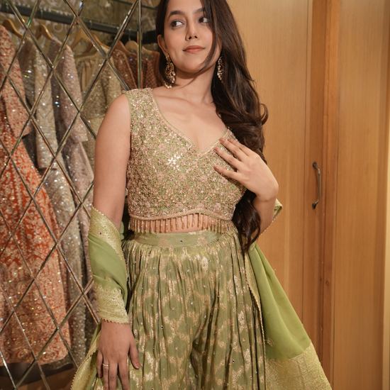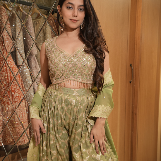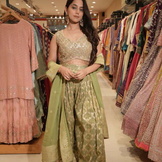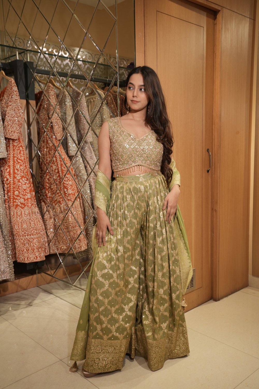 Pista Green Shimmer Tissue Readymade Sharara Set With Georgette Dupatt – The Panna Shop
