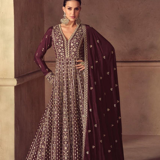 Panna Garnet Chinon Floor Length Readymade Suit With Chinon Dupatta