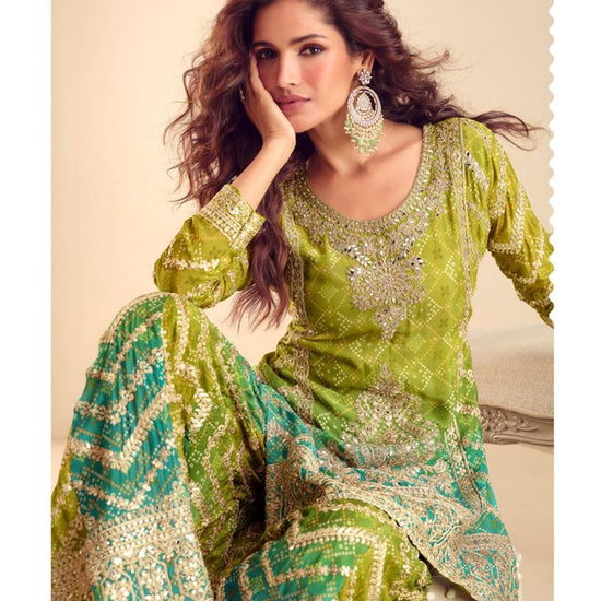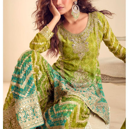 Panna Pista Chinon Readymade Sharara Set With Chinon Dupatta