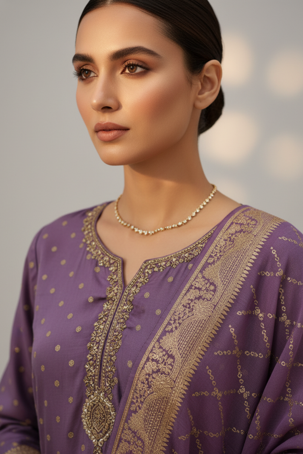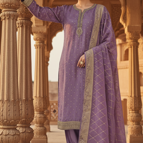 Featuring Banarasi Woven Zari, Bead, Cutdana, Dabka, Sequence & Zari Threadwork, this Dola suit is crafted for Formal Occasion. Its Color Variations and pre-stitching make it a go-to option. Dry Wash / Dry Clean recommended.