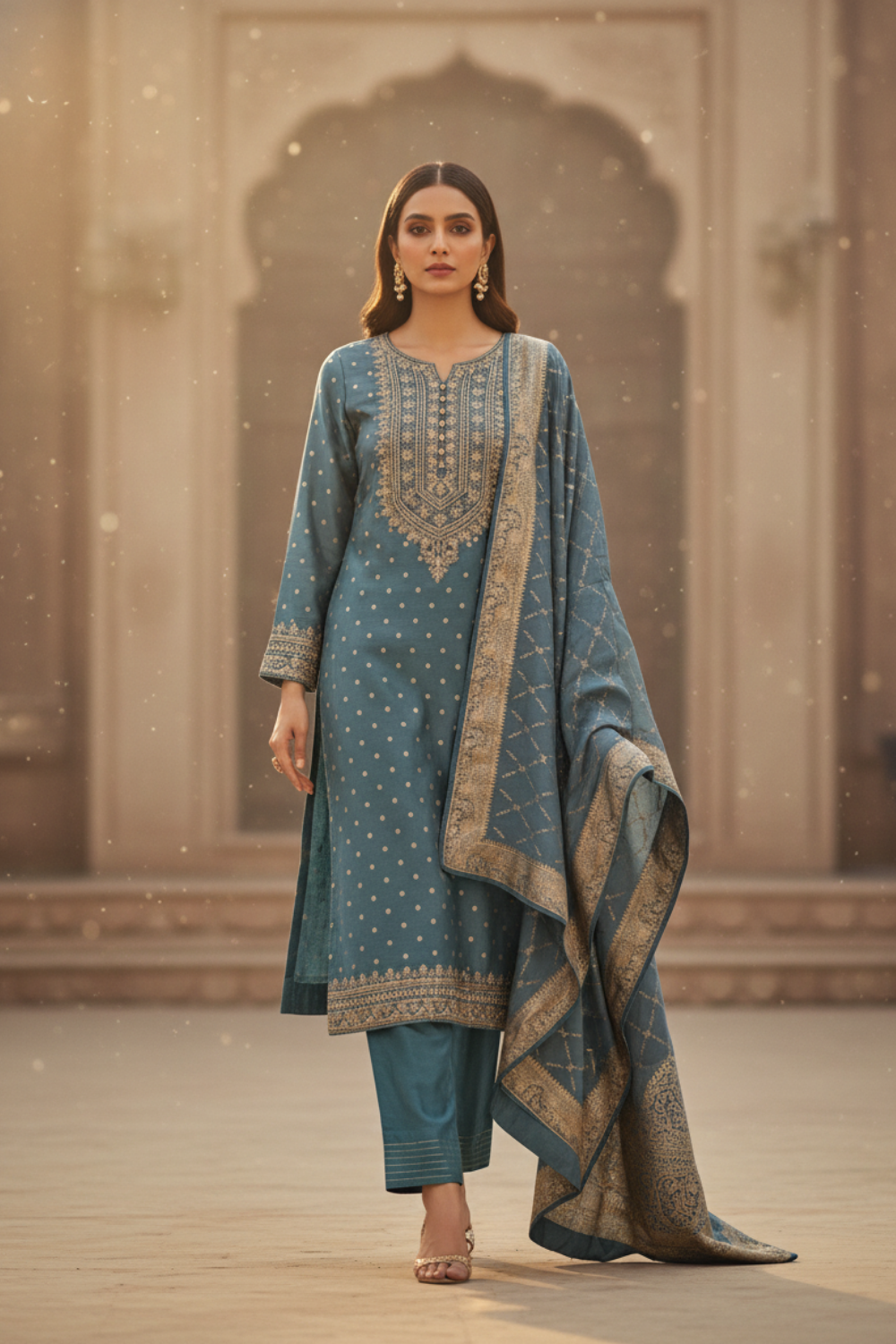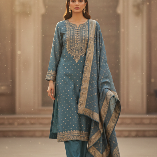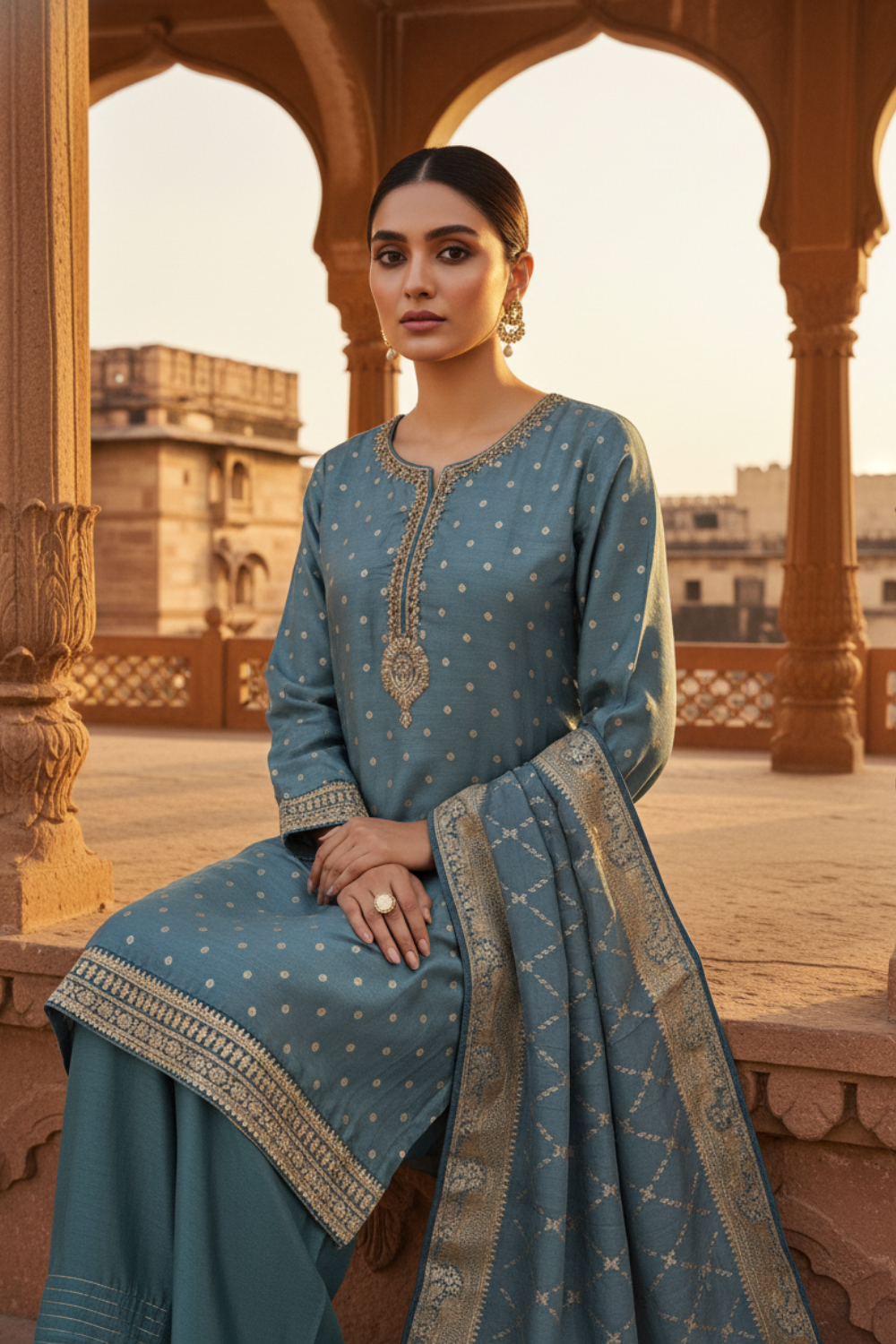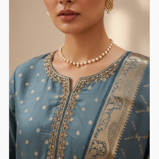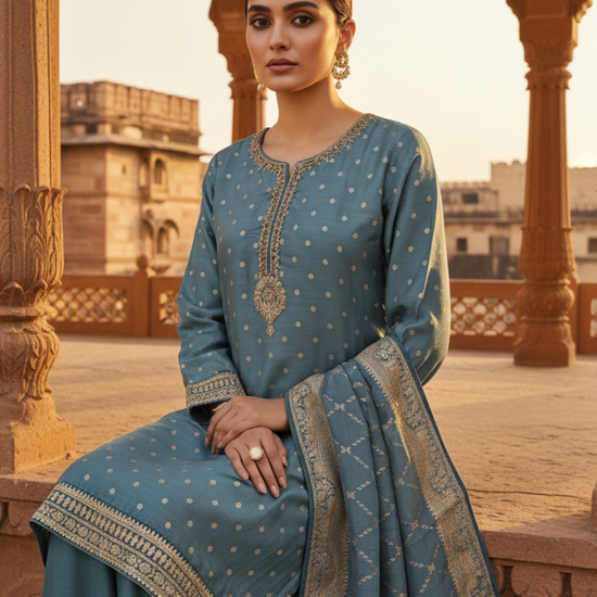 Sky Blue Dola Readymade Suit And Pant With Organza Dupatta – The Panna Shop