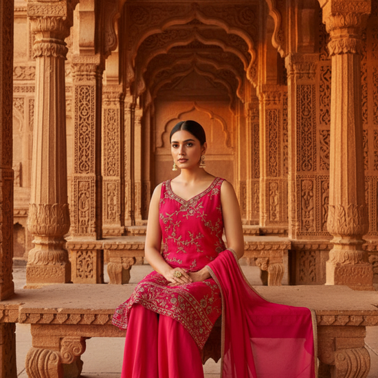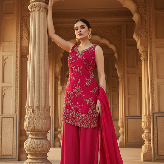 Panna Rani Chinon Readymade Sharara Set With Chinon Dupatta