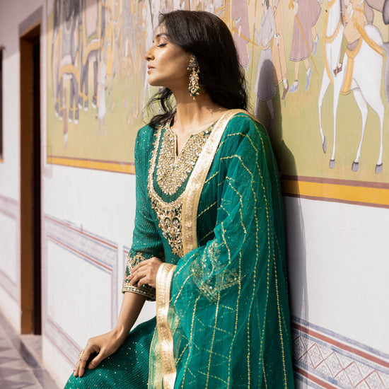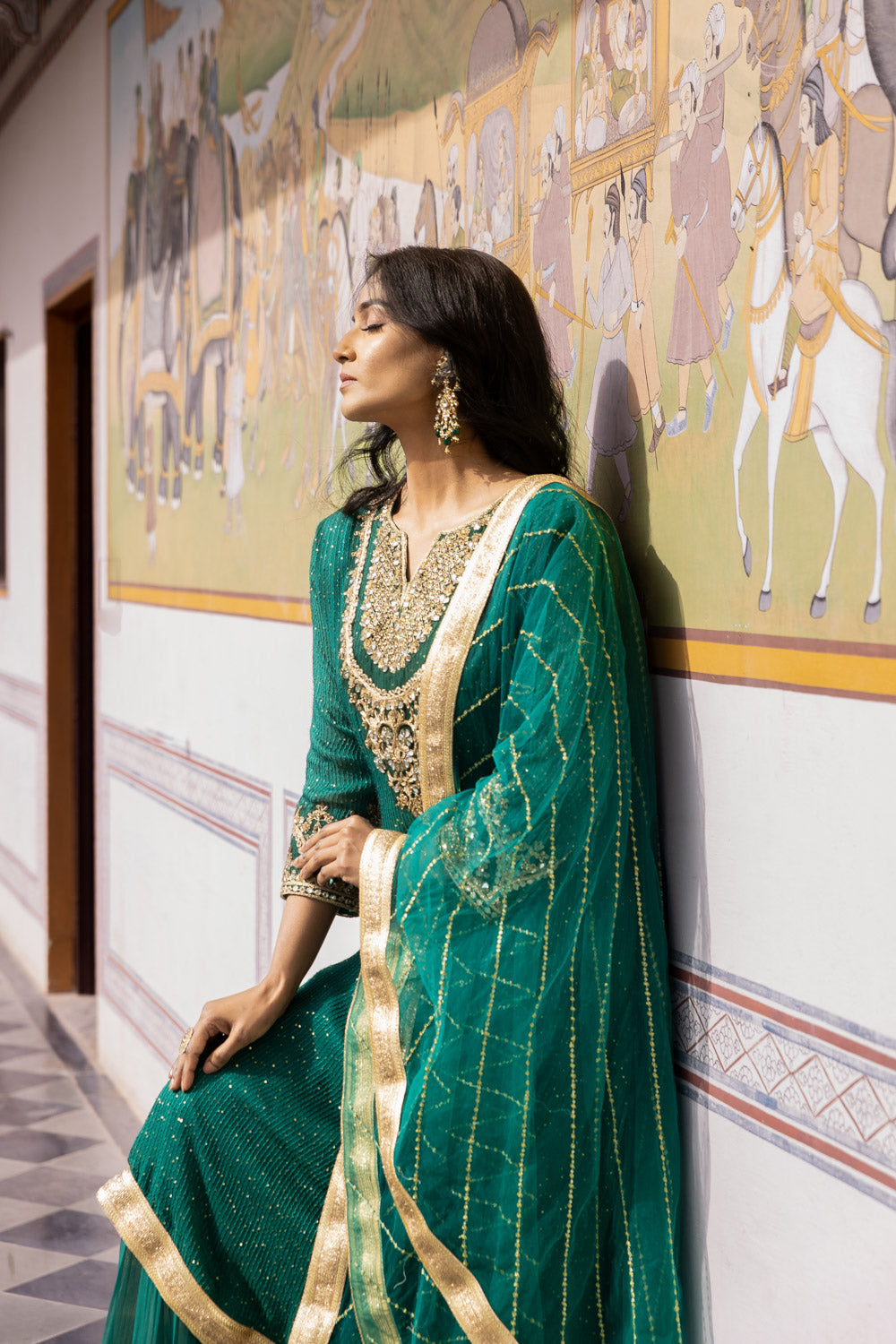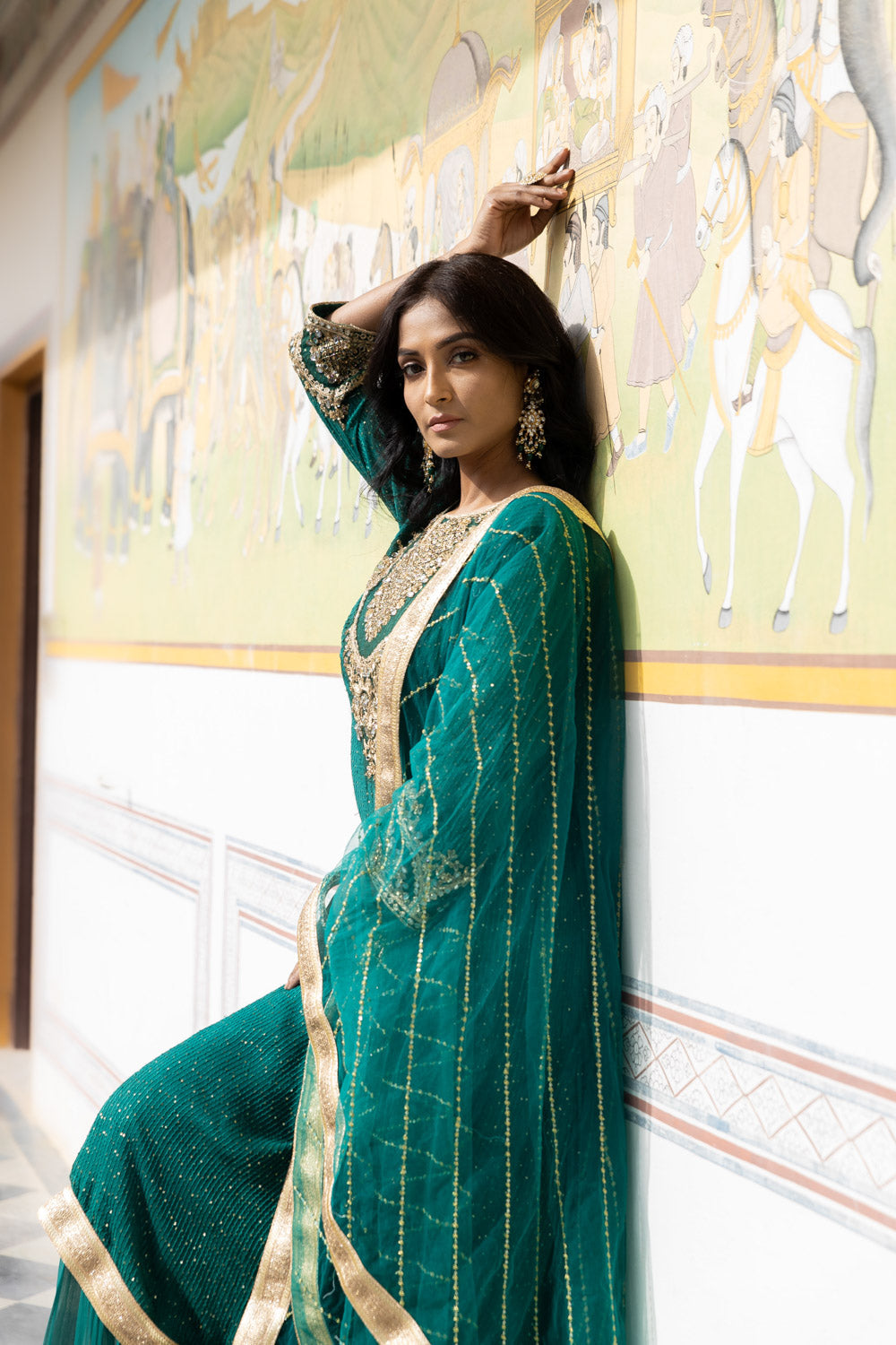 Our Sharara suits are the epitome of rich tradition, aesthetics, and glorious history. A perfect medley of beauty and grandeur that features exquisite craftsmanship and embellishments that make up these suits. Adorn our Sharara suits to enhance your beauty.