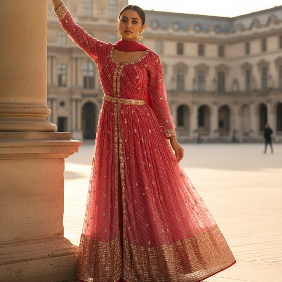 Panna Timeless Elegance Rani Organza Floor Length Readymade Suit With Chinon Dupatta