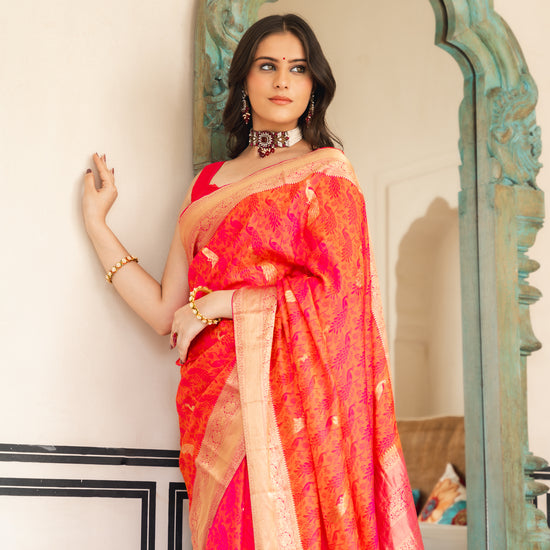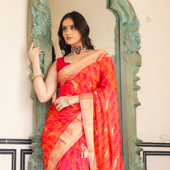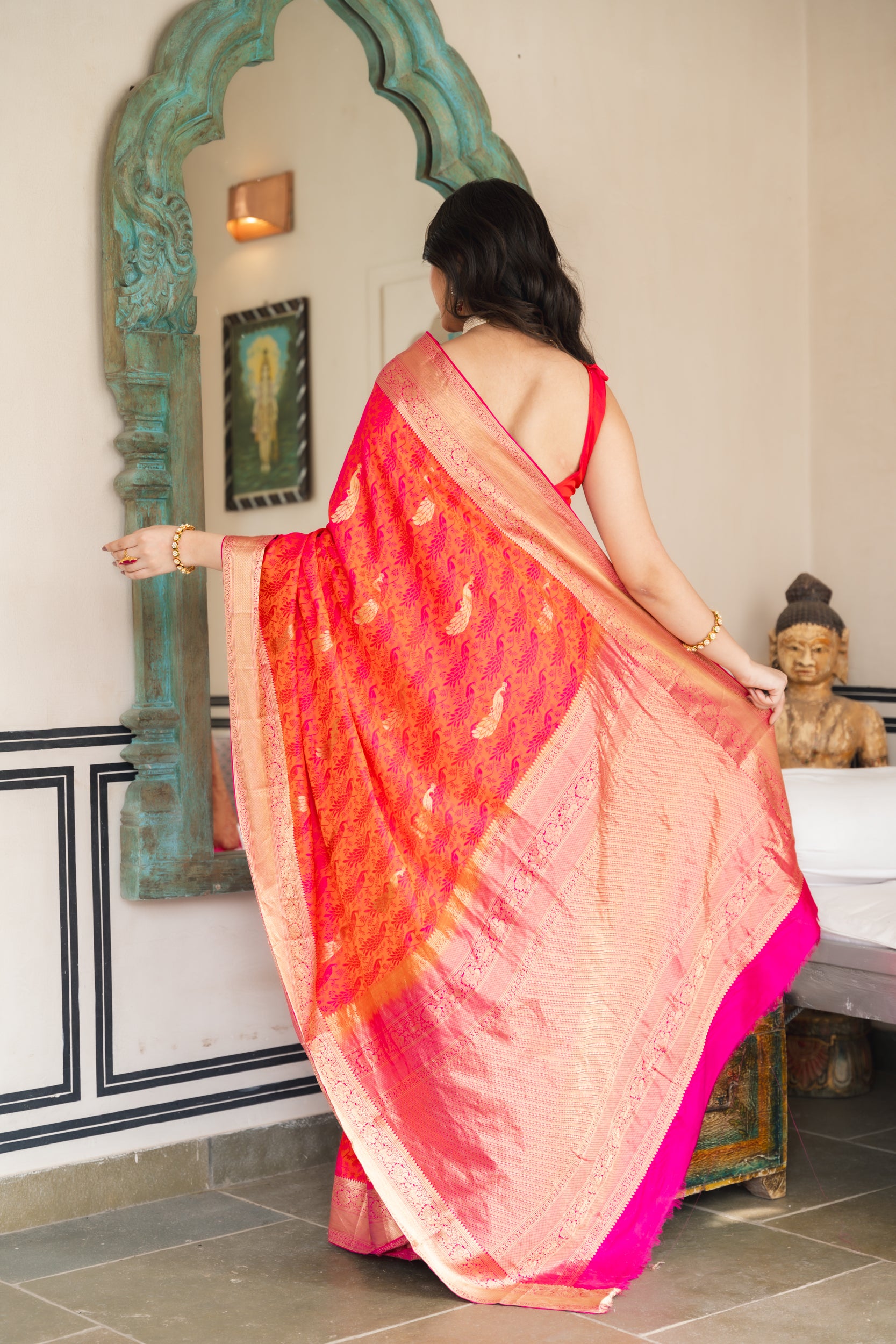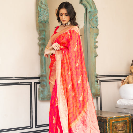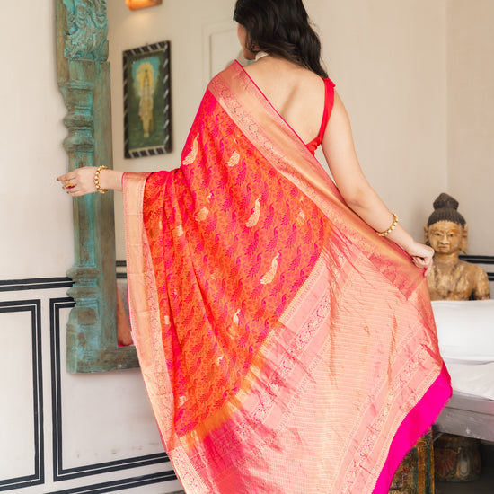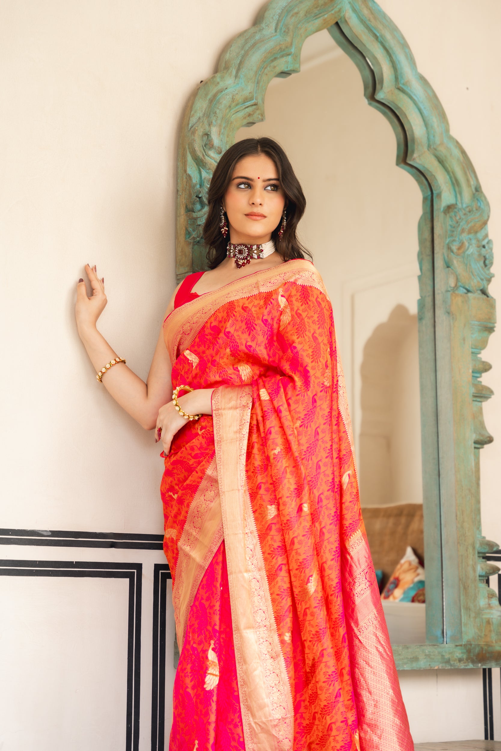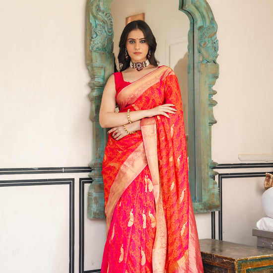 Panna Rani Woven Zari Banarasi Silk Saree With Unstitched Blouse
