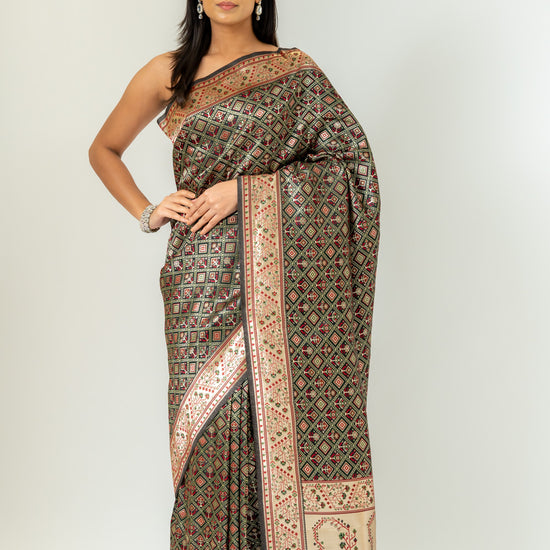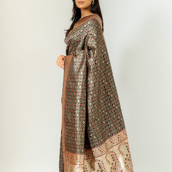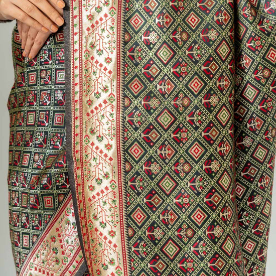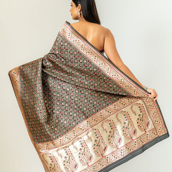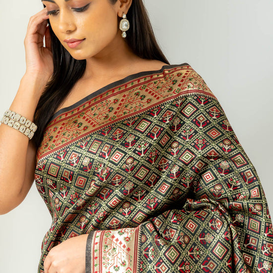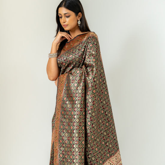 Panna Bold Statement Black Banarasi Silk Saree With Unstitched Blouse