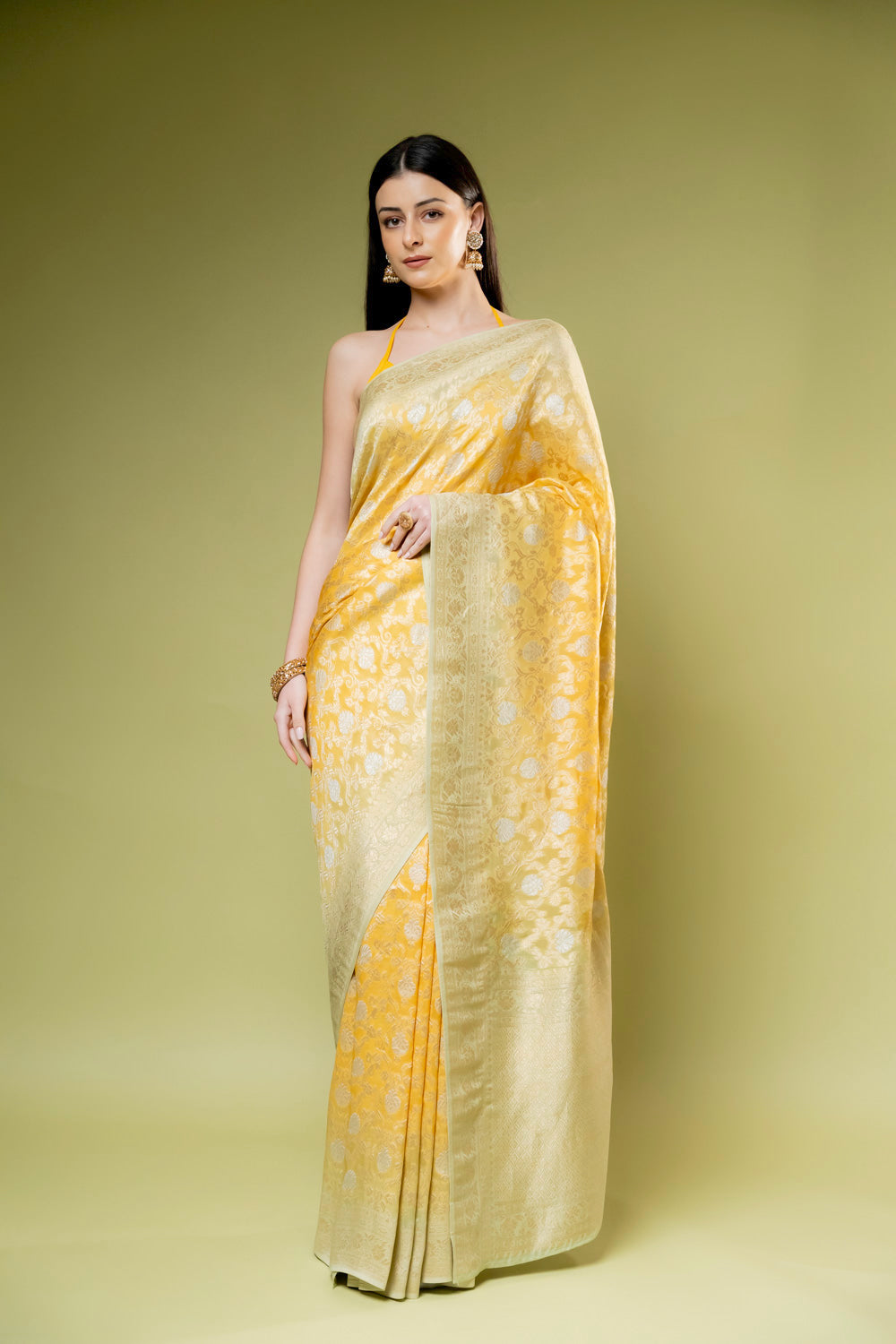 Pista Khaddi Georgette Saree With Unstitched Blouse – The Panna Shop