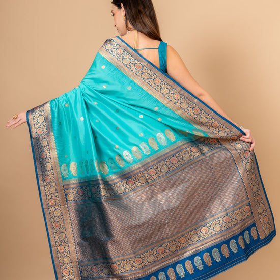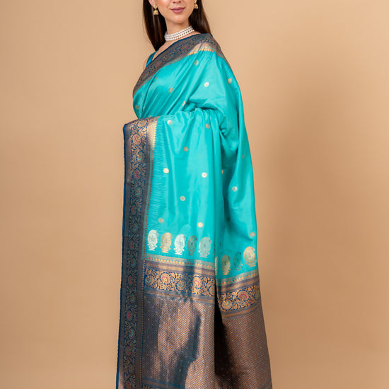 Royal Heritage Tea-green Banarasi Silk Saree With Unstitched Blouse – The Panna Shop