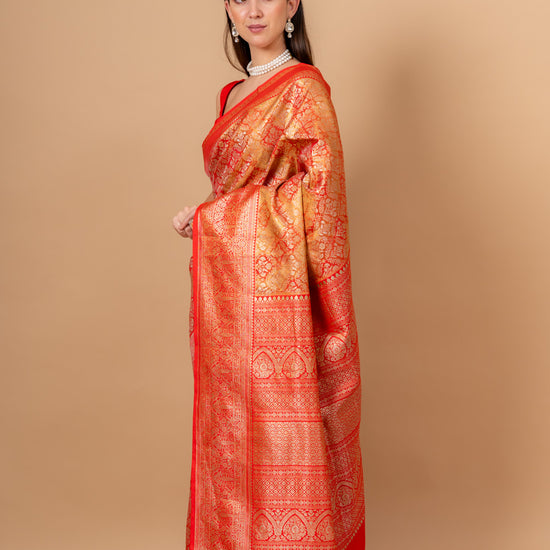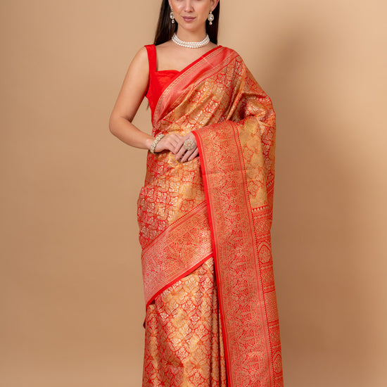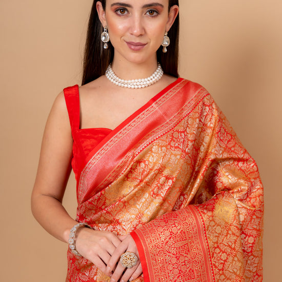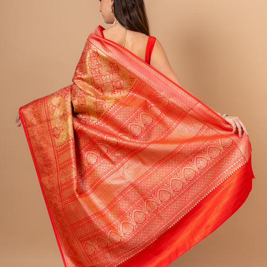 Panna Grace Redefined Red Banarasi Saree With Unstitched Blouse