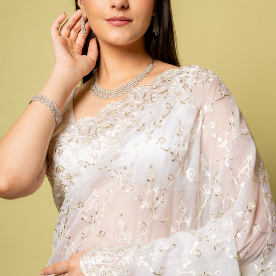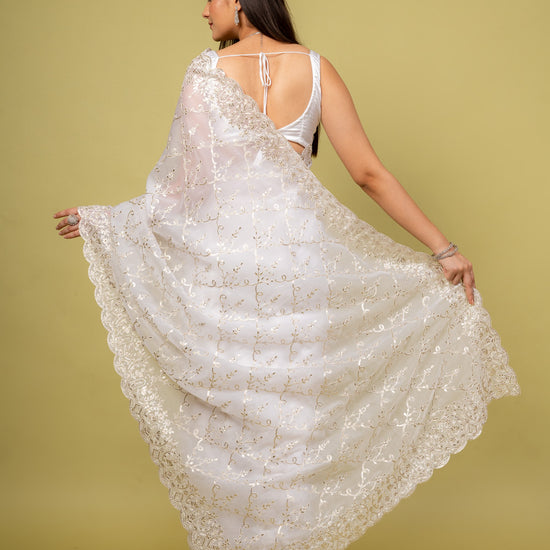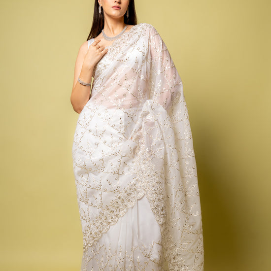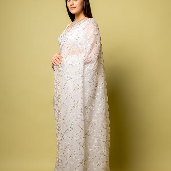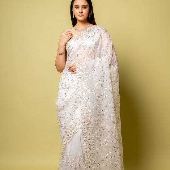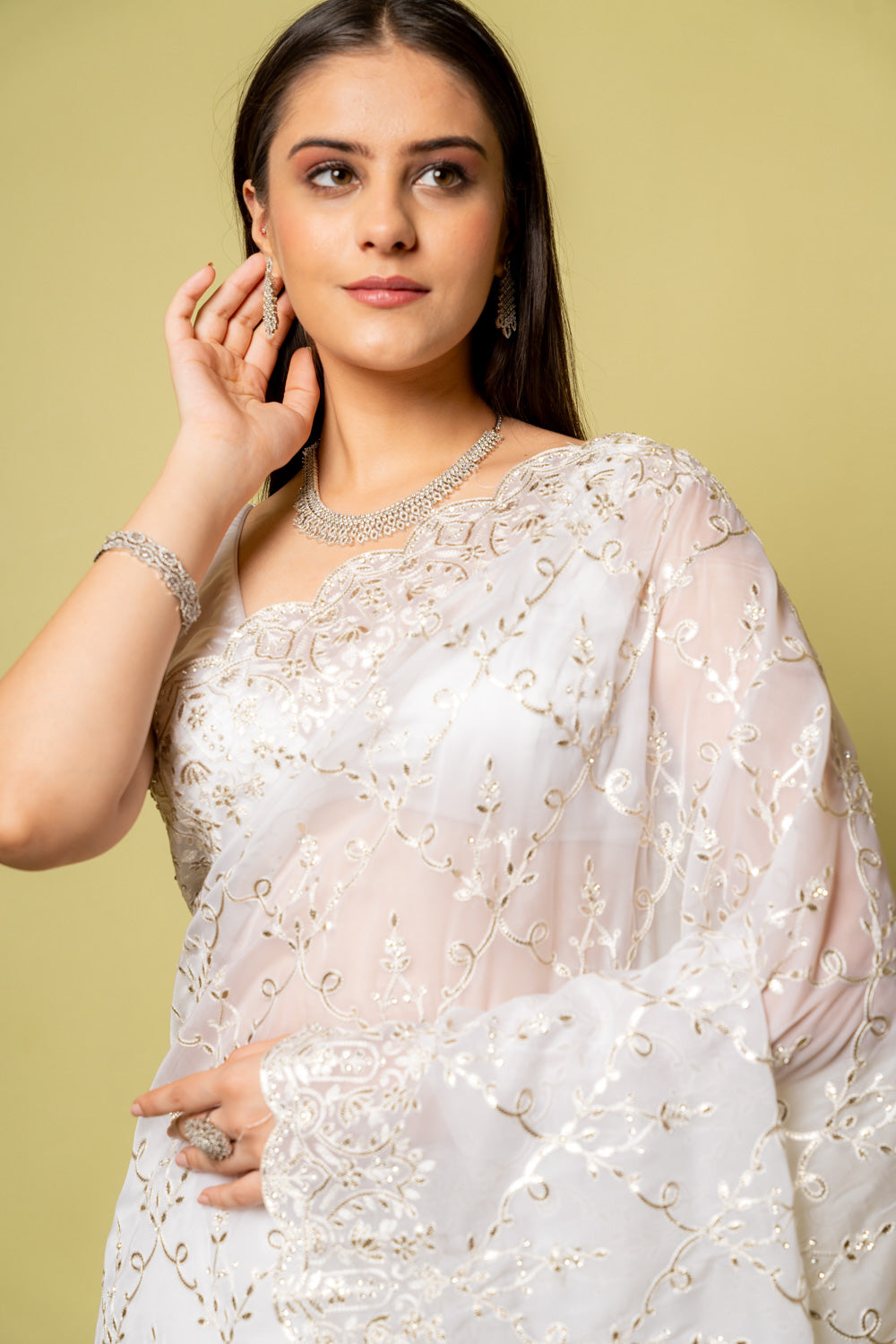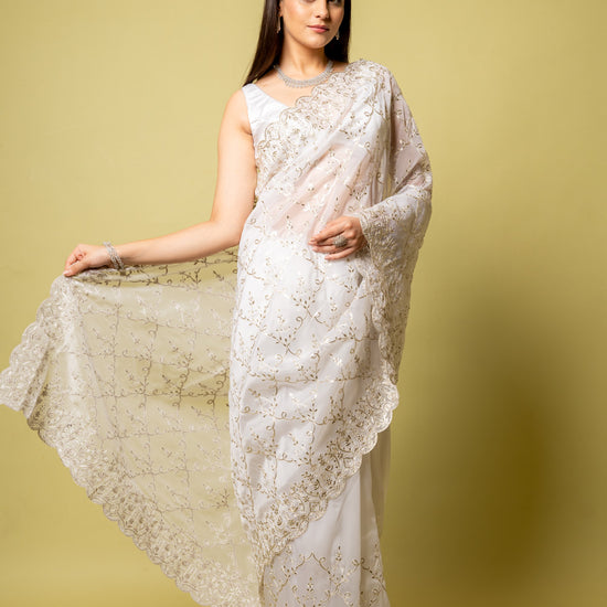 | SilverEmbroidery | FestiveFashion | IndianEthnicWear | PartyWearSaree | OffwhiteOrganzaSaree | EthnicWear | FestiveOccasions |