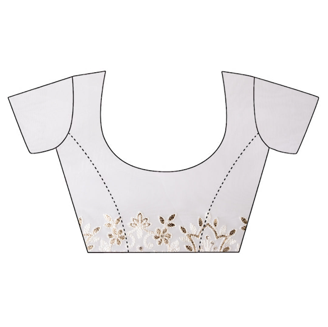 Step into elegance with this luxurious Organza Jaal Print Saree. The saree is heavily adorned with Intricate Silver Zari Embroidery Richly designed pallu is embellished with dense Floral embroidery, making it the highlight of the saree, and regal appeal—perfect for weddings, receptions, engagement parties, cocktail evenings, and festive celebrations.