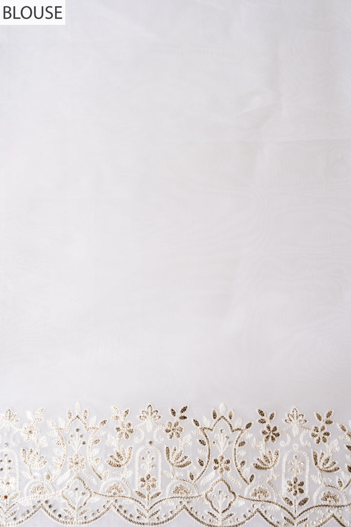 Panna Effortlessly Beautiful Off White Organza Jaal Print Saree With Unstitched Blouse