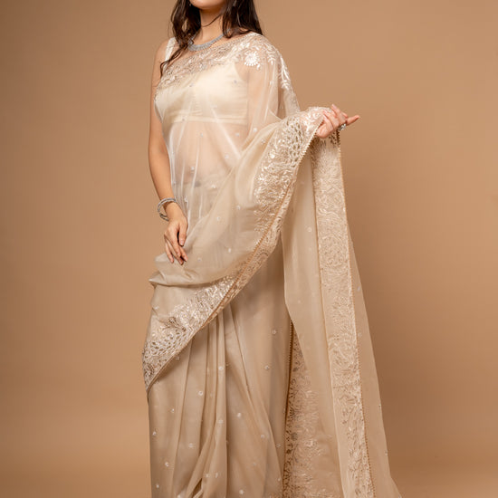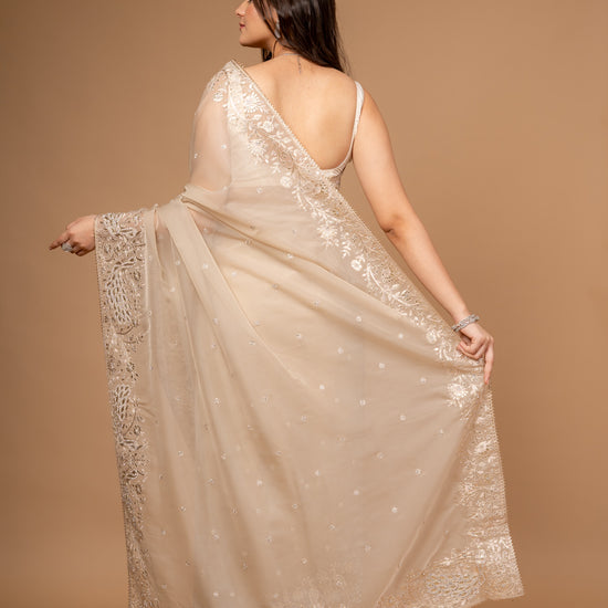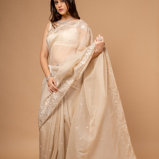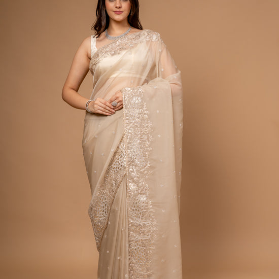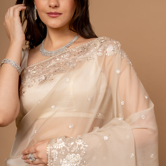 | SilverEmbroidery | FestiveFashion | IndianEthnicWear | PartyWearSaree | TussarOrganzaSaree | EthnicWear | FestiveOccasions |
